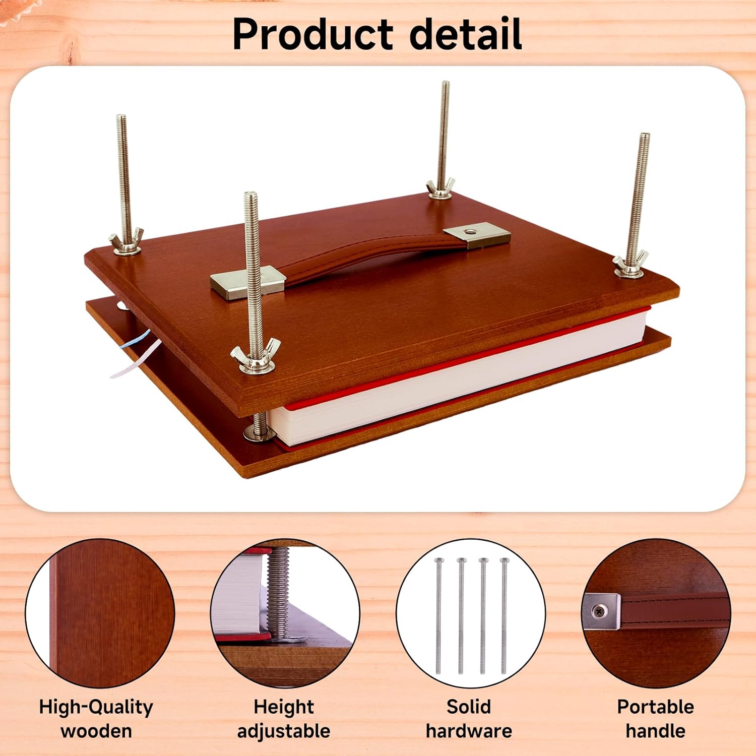 - EXTRA LARGE SIZE : With it's substantial dimensions of 9.8x7.87", our wood bookbinding press accommodates books of various sizes. The added leather grip handle improves handling, making it easier to move and position, thereby boosting its portability.