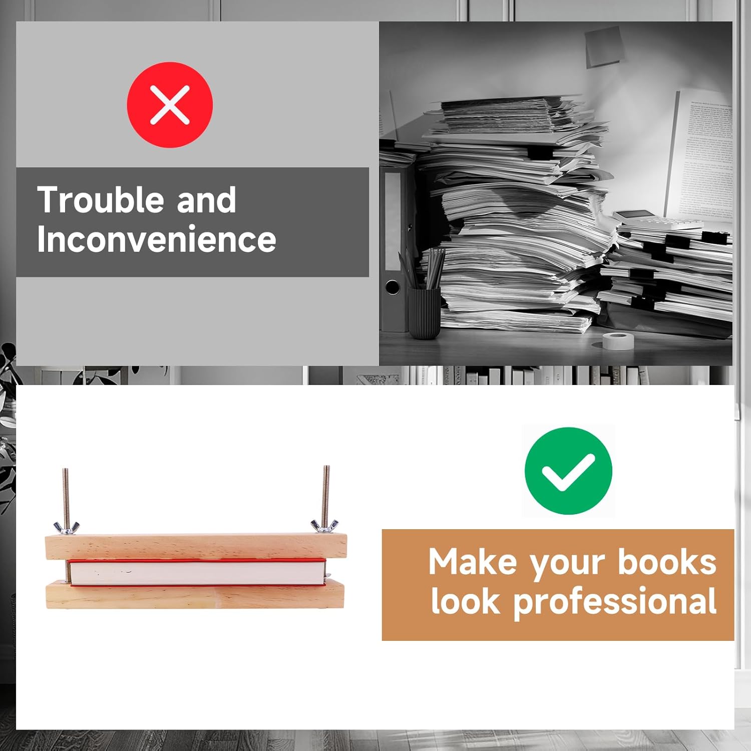 - High Quality Materials: The book press is made of high quality wooden, The Screw and nut are stainless steel. It ensures durability and long-lasting performance.