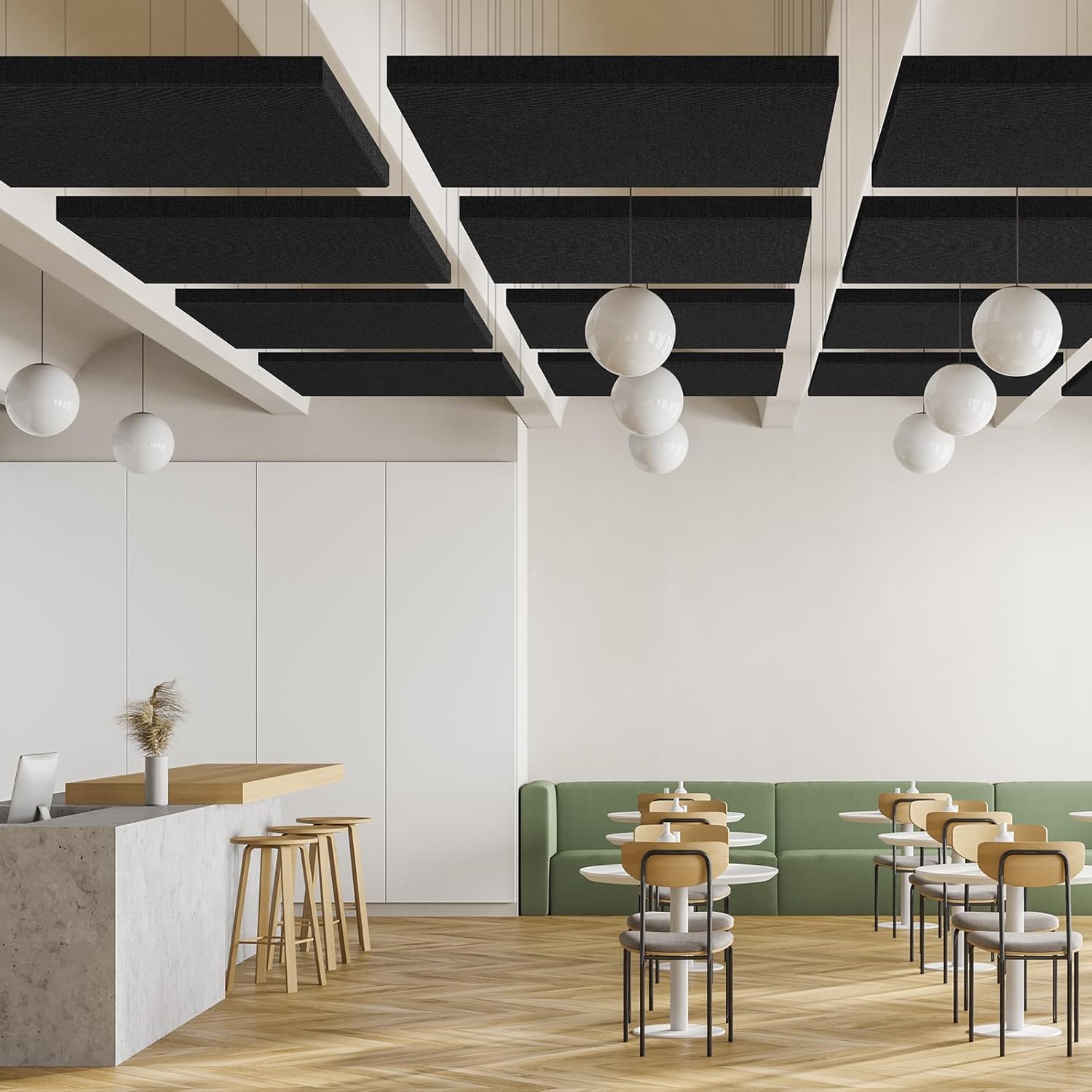 UMIACOUSTICS 4 PCS Acoustic Panels with Hanging Bracket, 2” Thick Fiberglass Sound Proof Panels Removable for Studios, Office, Home Theater Ceiling or Wall- Black