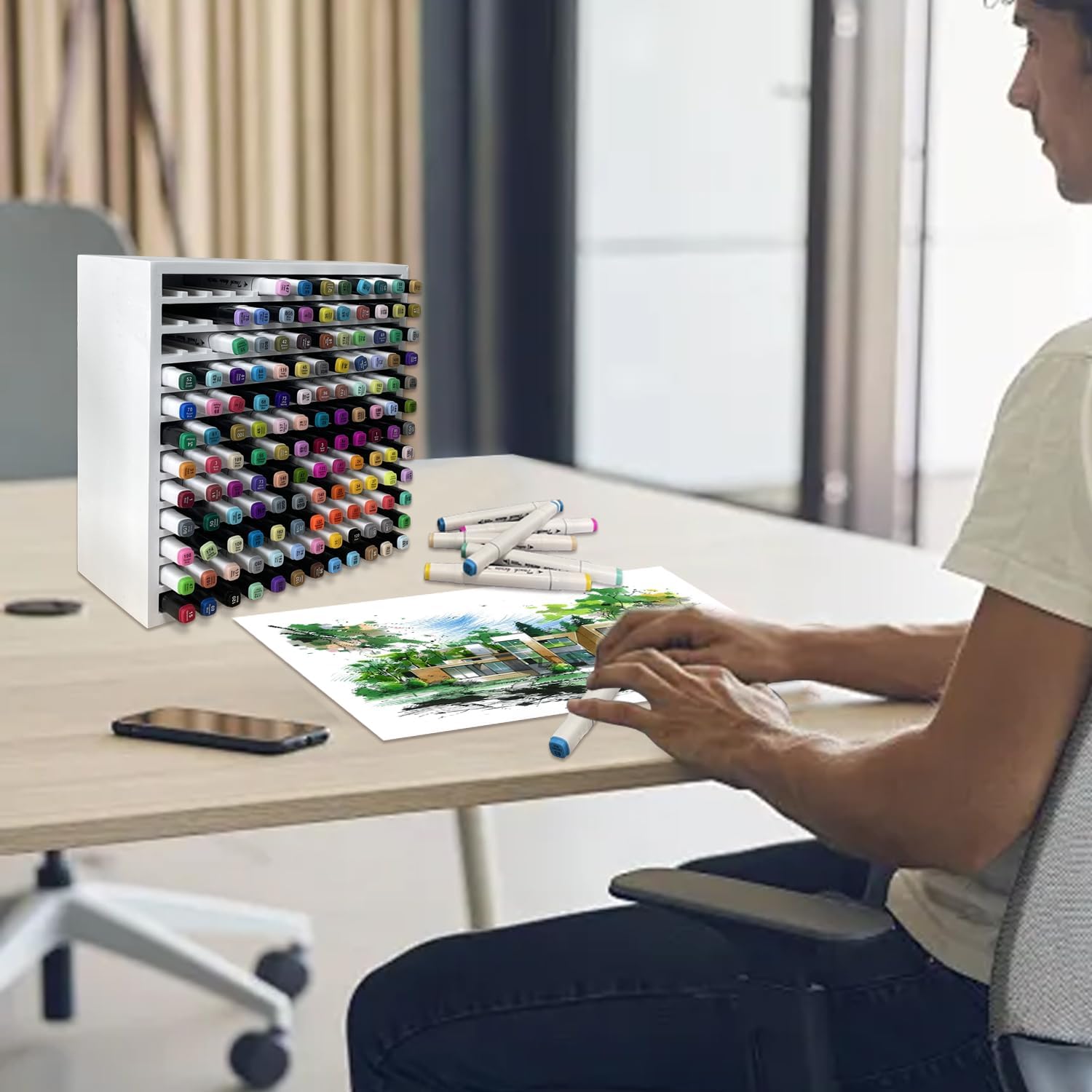 - DECLUTTER YOUR DESK - Say goodbye to the mess on your desk! Our marker organizer features spacious individual compartments, allowing you to neatly arrange and categorize your markers, pens, colored pencils, art brushes, and more. Experience the satisfaction of having an organized workspace.