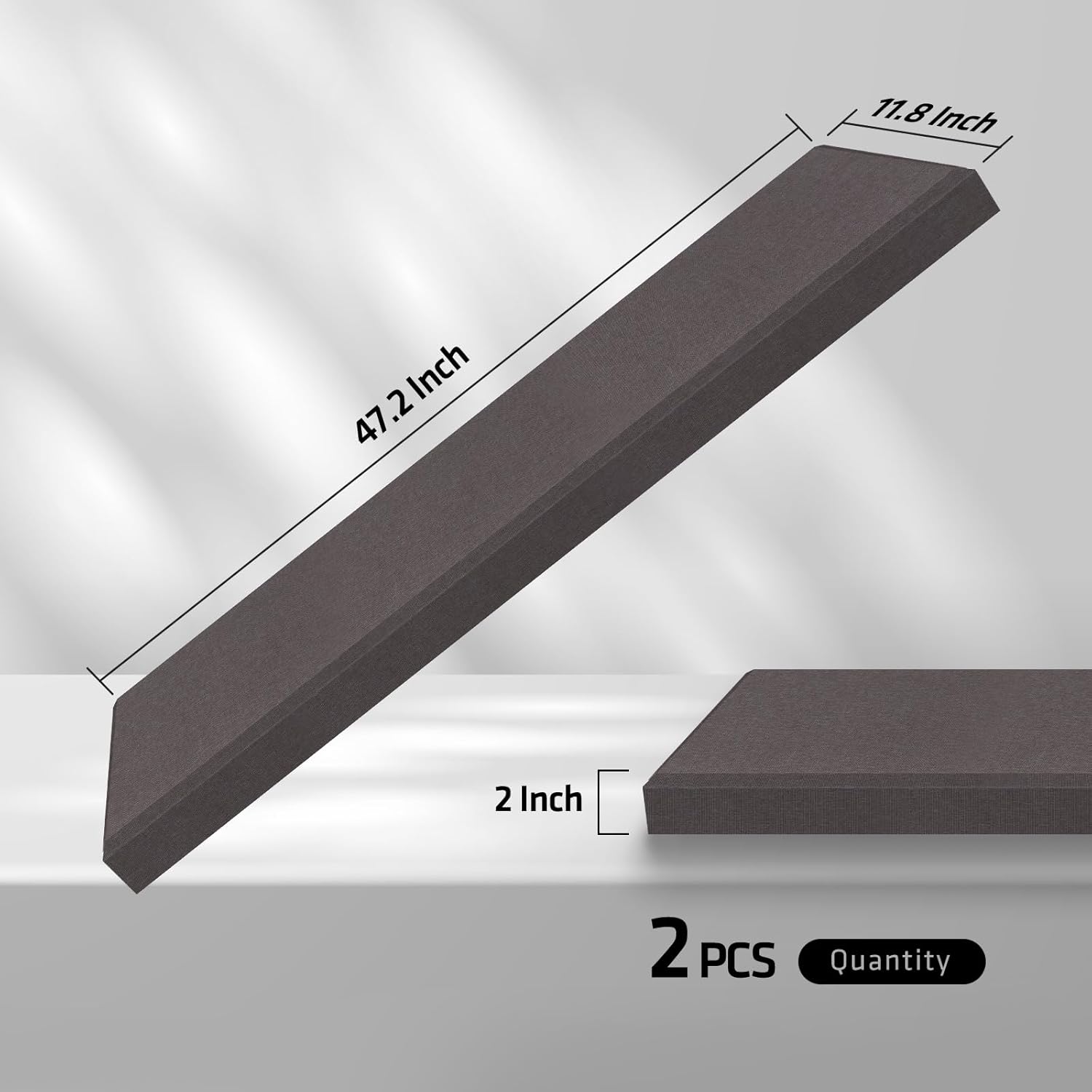 2” Thick Acoustic Panels with Hanging Brackets to the Wall, 2 PCS 47.2” x 11.8” Fiberglass Sound Absorbing Panels for Home Theater Church Office Wall or Ceiling, Mud Grey