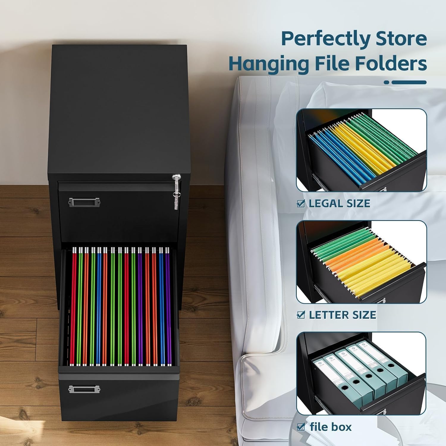 - Sturdy Metal Construction: The file cabinet is made of cold-rolled steel. which provide long using life. Powder-coated finish protects it from water and rust, resistant to scratches.
