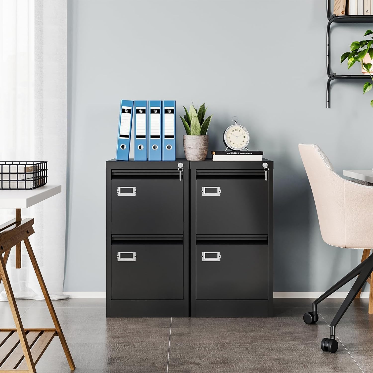 MIIIKO 2 Drawer Filing Cabinet with Lock, Metal Vertical File Cabinets for Home Office, Lockable File Storage Cabinets Under Desk, Letter/A4 File Folders Storage(Assembly Required)