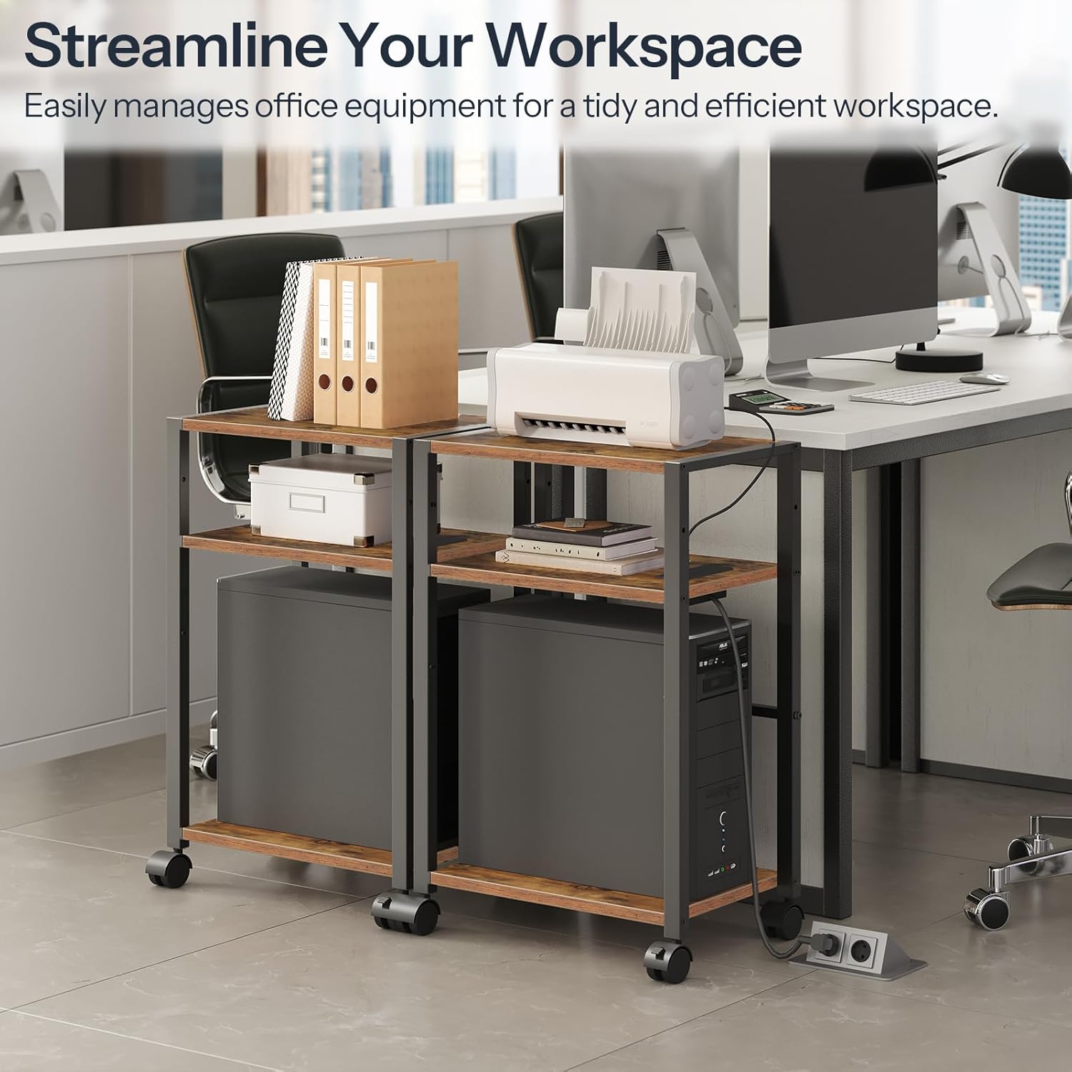 - Optimized Office Space: At 16.6"L x 11.4"W x 29.7"H, the PC tower stand matches the height of most office desks. Its 3-tier storage design streamlines equipment organization, with the top for printers, the middle for paper, and the bottom for your computer tower