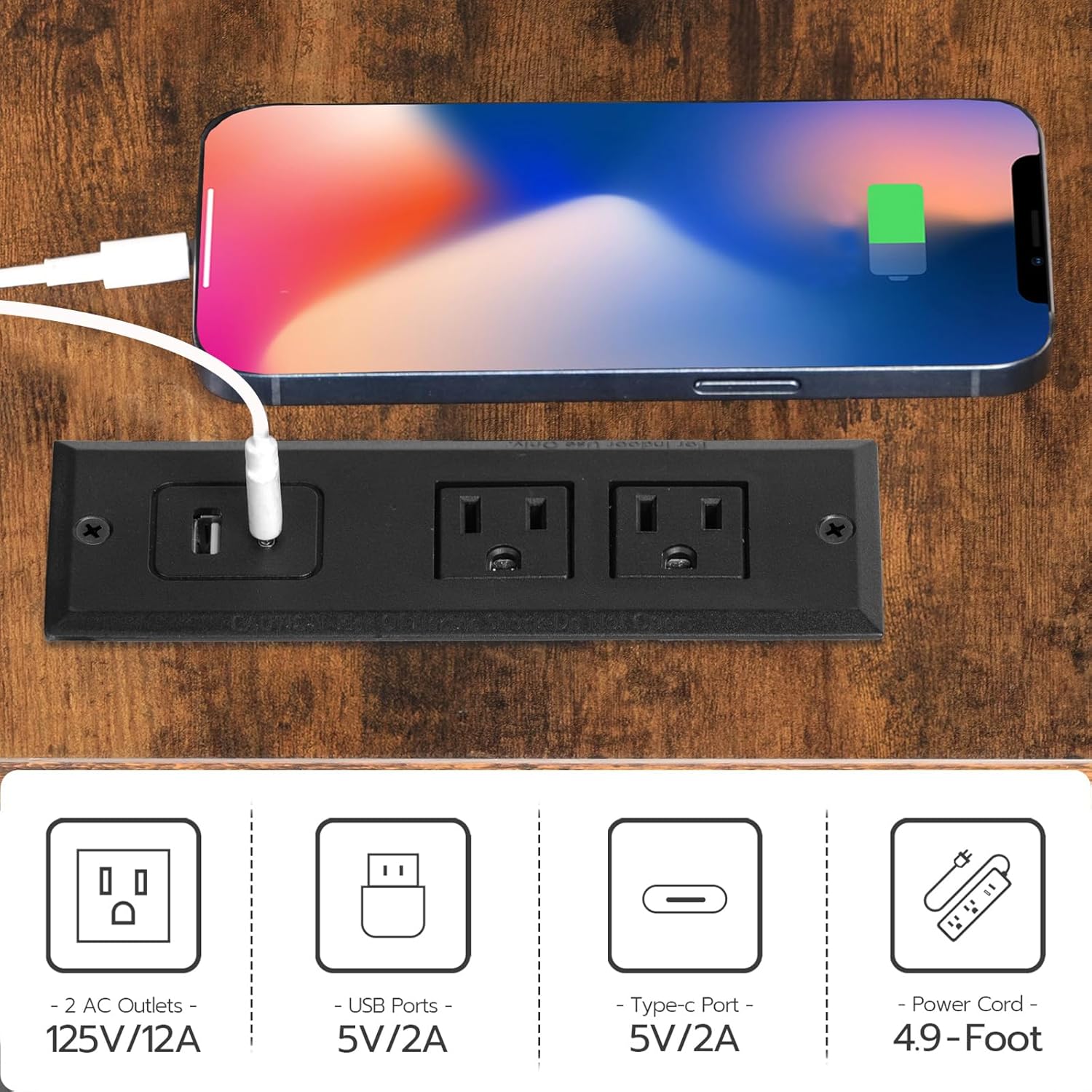 - Versatile Power Station: The tower stand cart boasts a multi-function power strip with 2 AC outlets and 2 USB ports for easy charging of your tower, printer, and more. The power strip can be moved along with the shelf position to tailor your charging need