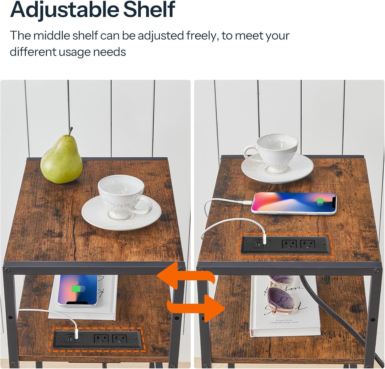 HOOBRO Computer Tower Stand, 3-Tier PC Tower Stand, PC Stand with Charging Station, Mobile CPU Stand Fits Most PC, Adjustable Shelf, for PC Tower, Printer, Home Office, Rustic Brown BF12UCJ01