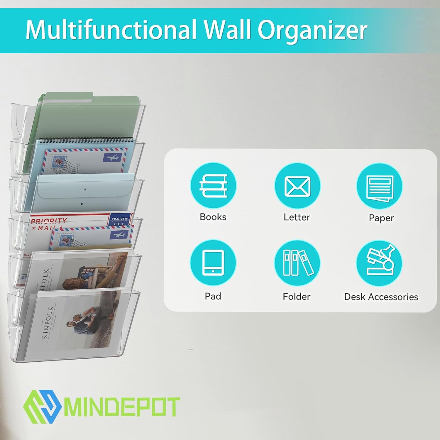 - 6 Acrylic Wall Pockets - MINDEPOT 6 pack Single wall file organizer can be used individually or stitched together to organize mail, folders, notebooks, magazines, literature, and other home/office supplies.