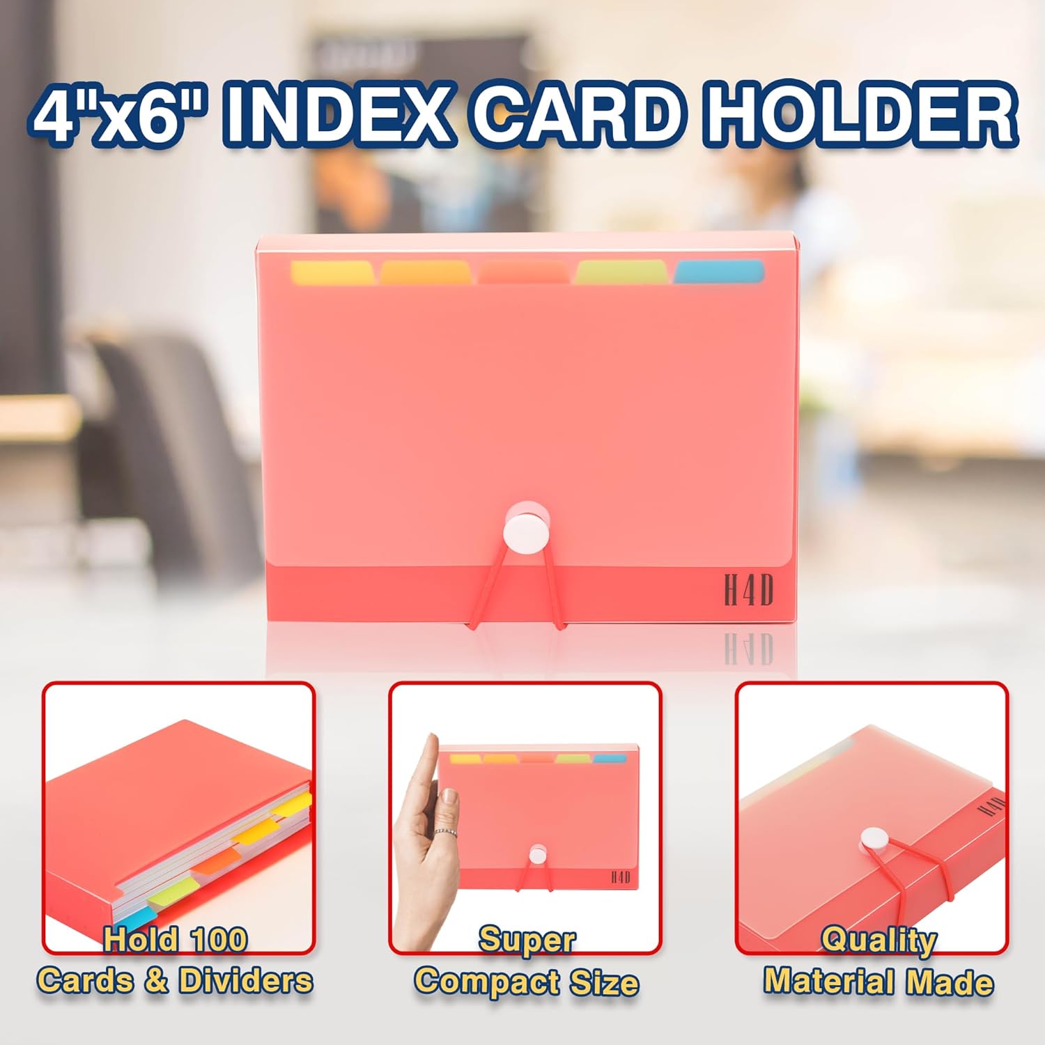 H4D 4x6 Index Card Case with 100 Heavyweight Ruled Index Cards and Dividers, Red