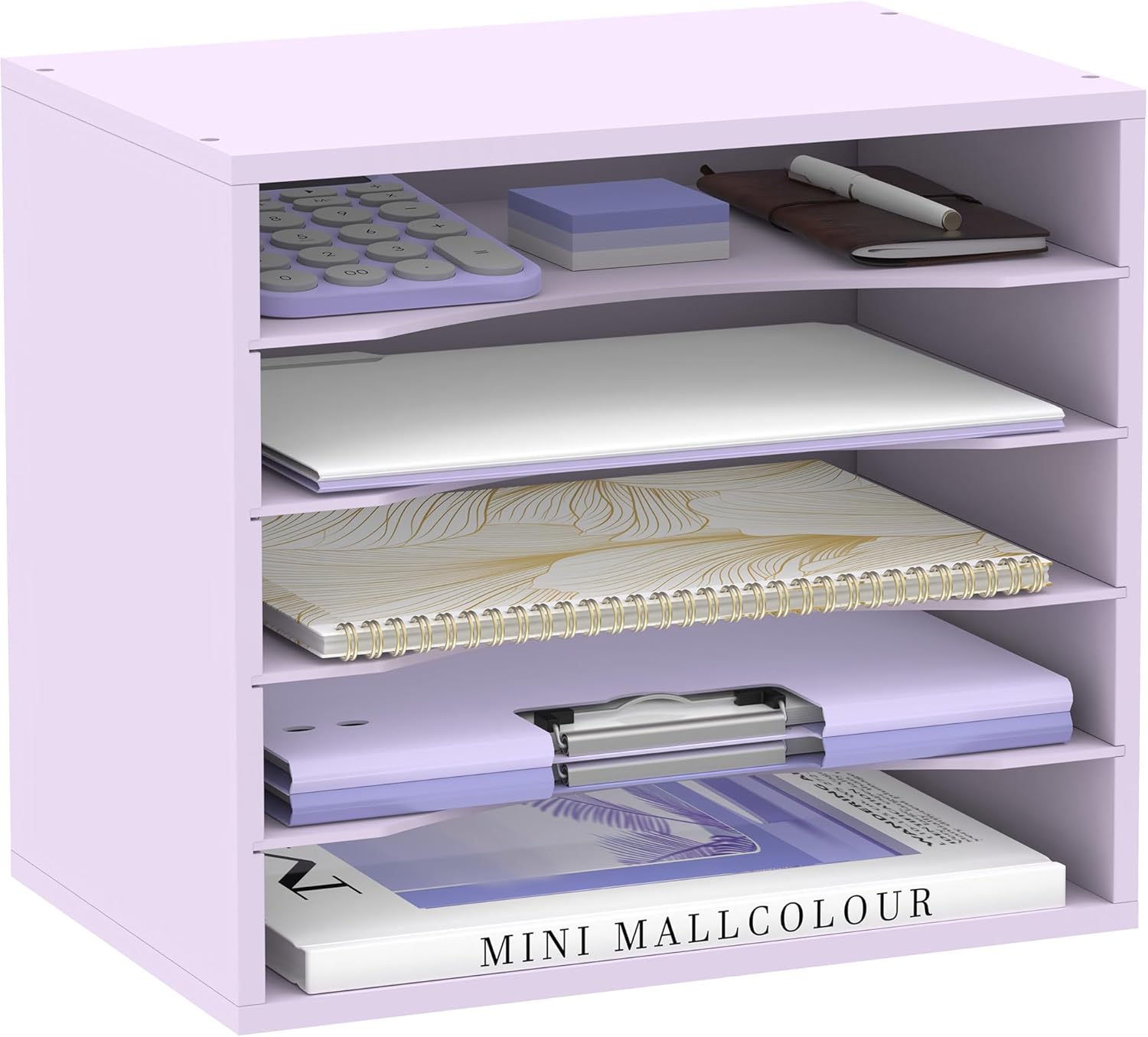 - [Elegant Shape & Color] The elegant design of our paper tray organizer makes it a great addition to any workspace. The smooth matte finish also help this desktop shelf add on perfectly to your office or home set up. The curved design of the shelves is beautiful and make you pick up the files easier.