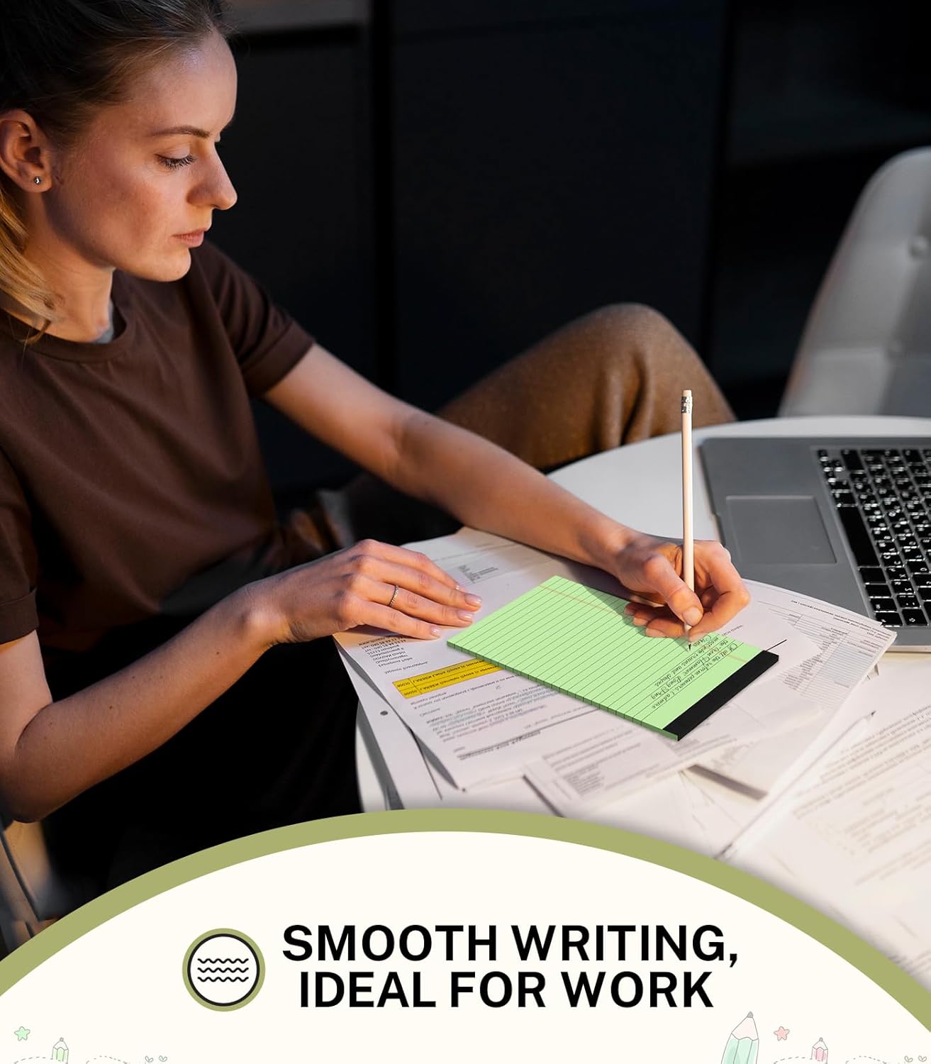 - 【THICK PAPER& STURDY BACK】: Note pads 5x8 colored is made of more thicken paper and more sturdy backboard than most of other flimsy ones. Our college ruled legal pad 5x8 paper pad is smooth and good quality, comes in various colors. Pen writes very smoothly on these pads, thickness back of the pad is a very sturdy piece that helps the pad hold up very well. A must-have for list and note