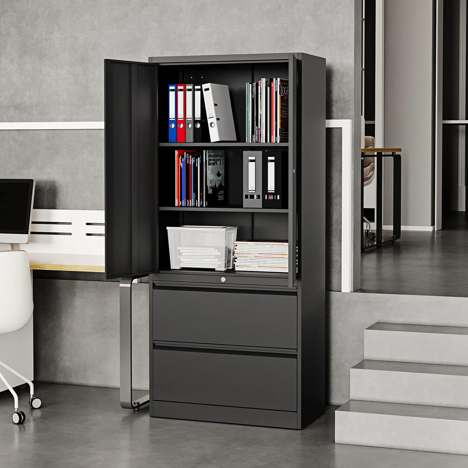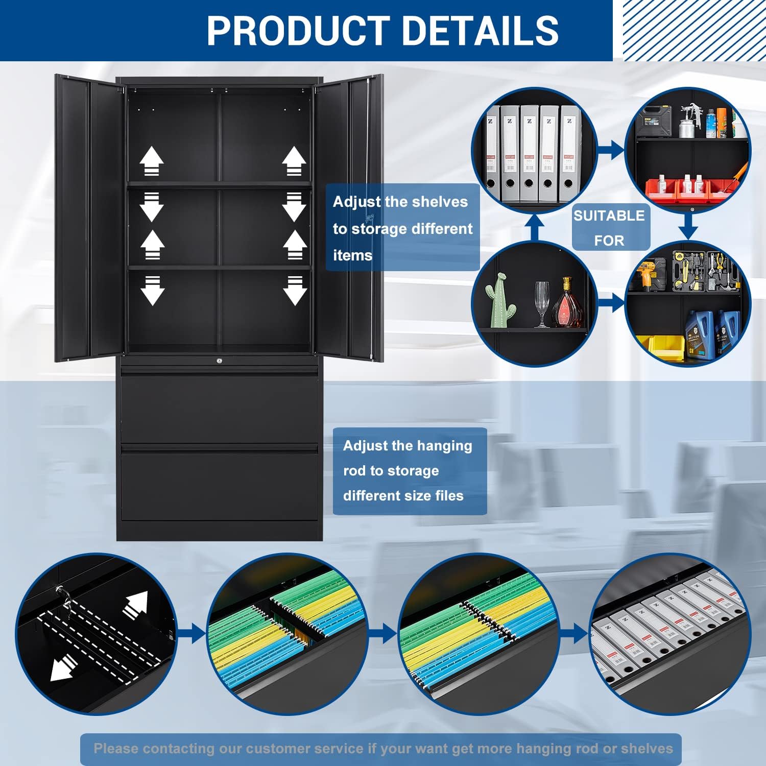 Metal Cabinets with Lockable Drawers and Doors Lateral File Cabinets Steel Filing Lockers Book Case for Home Office Hanging Files Letter/Legal/F4/A4 Size