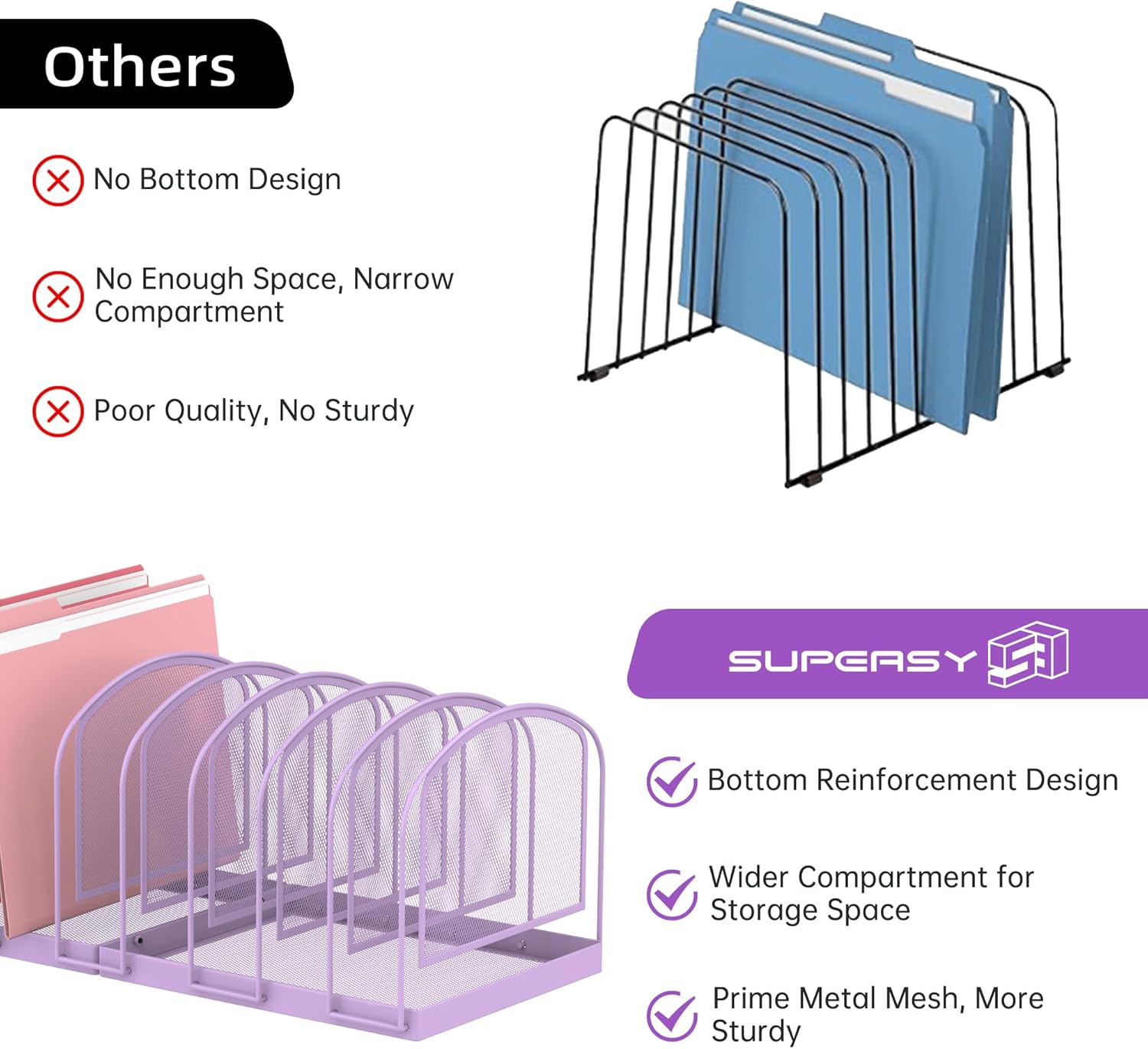 - [Space Saving] If your desk is cluttered with files, try using SUPEASY file rack to organize it. The vertical compartment design allows you to easily find the folders you need, keeping your desktop tidy.