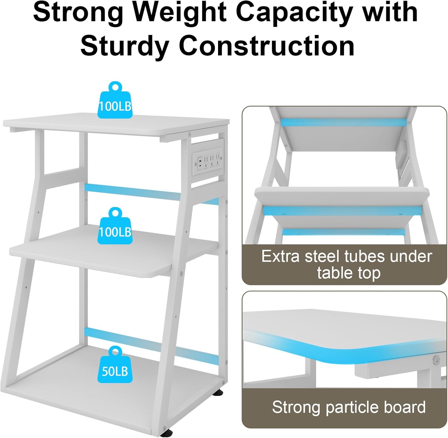 - 【Built-in Power Outlets】The printer table for home office is configured with charging station on the side panel. There are 3 AC outlets,1 Type-C and 1 USB Port that allows for simultaneous charging of the printer, computer host or shredder, and your laptop, phones. We provide 5ft length power cord for your flexible use of position.