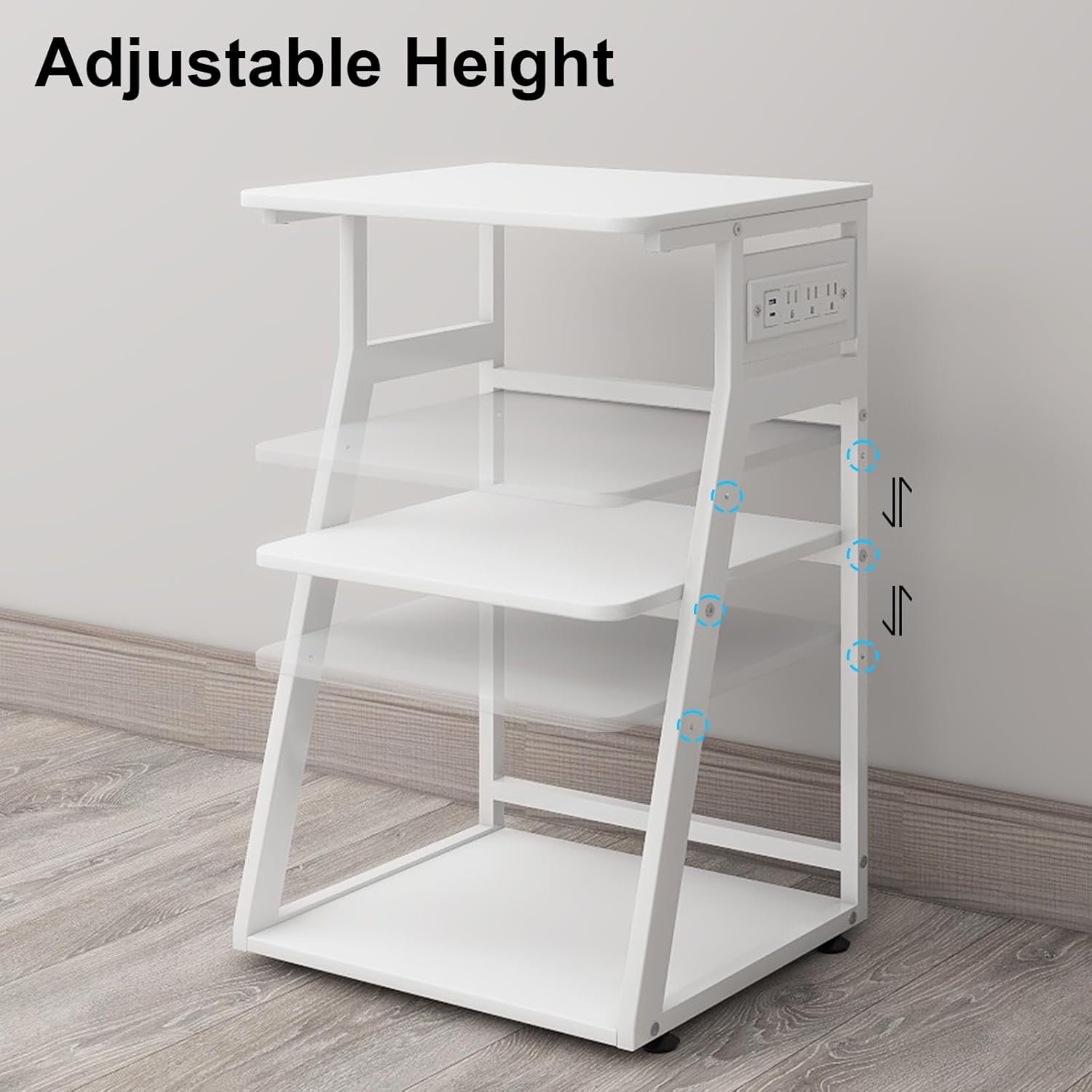 Natwind 19.7"x15.7" Printer Stand,3 Tier Printer Table with Charging Station, Rolling Cart with Adjustable Storage Shelf for Home Office Organization, Stand for Heat Press,3D Printer (White)