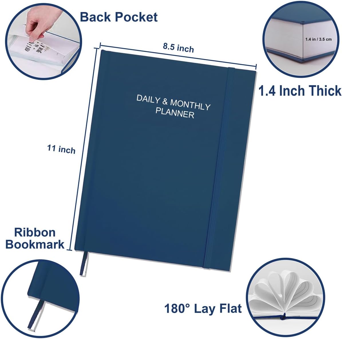 - Features - 8.5'' × 11'' Planning Pages | Fabric Cover | Personal Information | Yearly Overview | Important Dates and Anniversaries| Holidays |Two Pages Each Day | Contacts | Hourly Schedule Pages | Two Bookmarks | Back Pocket | Elastic Strap Closure |.