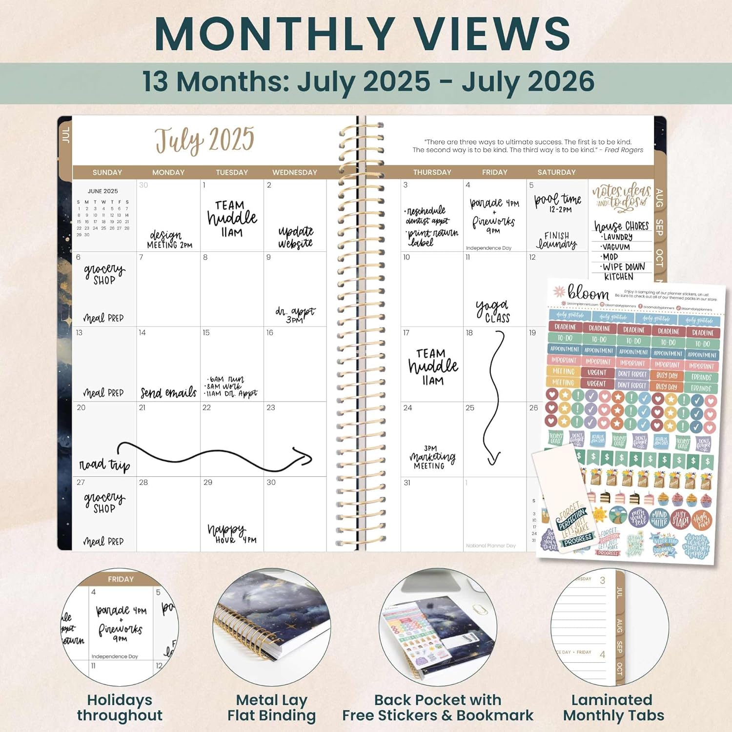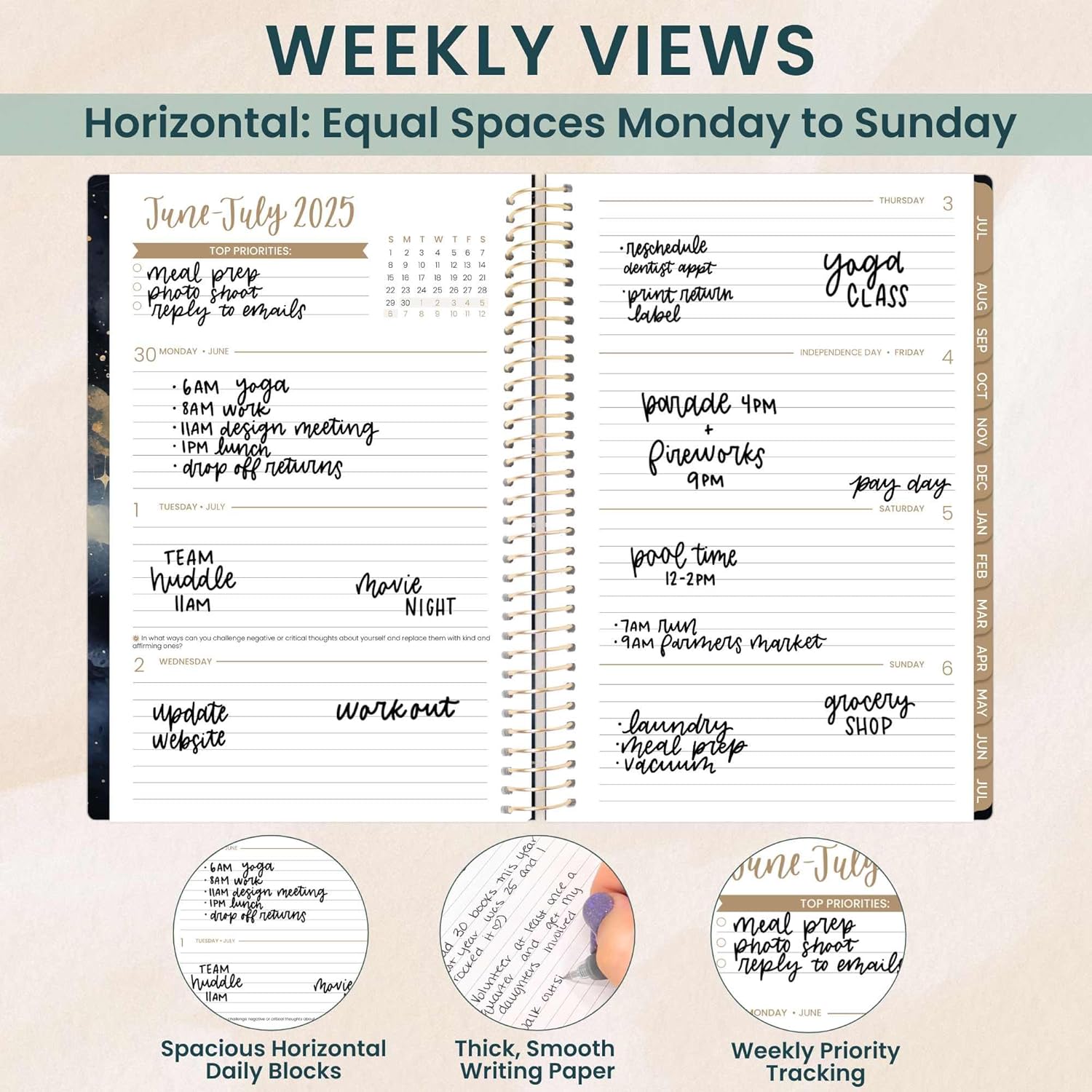 - EFFORTLESS WEEKLY & MONTHLY LAYOUT: This day planner features two-page monthly planner spreads and spacious horizontal weekly layouts, running from July 2025 through July 2026—perfect for tracking your tasks, deadlines, and appointments.