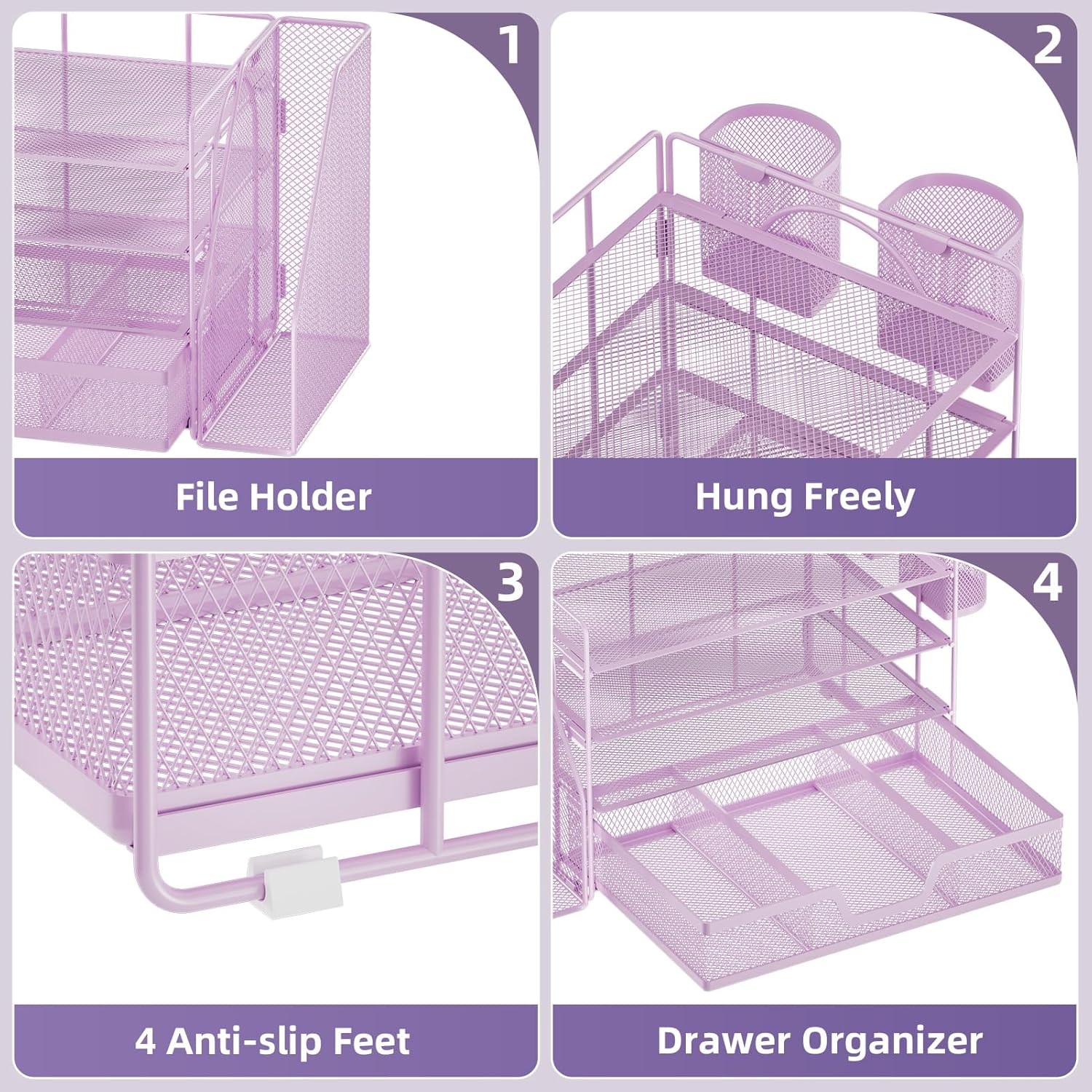 - 【High-quality Materials】The mesh desktop file organizer is made of lightweight and durable metal mesh, reinforced with a sturdy steel frame, and the outer layer is epoxy-coated, rust-proof and very durable, with long-lasting strength and reliable performance.