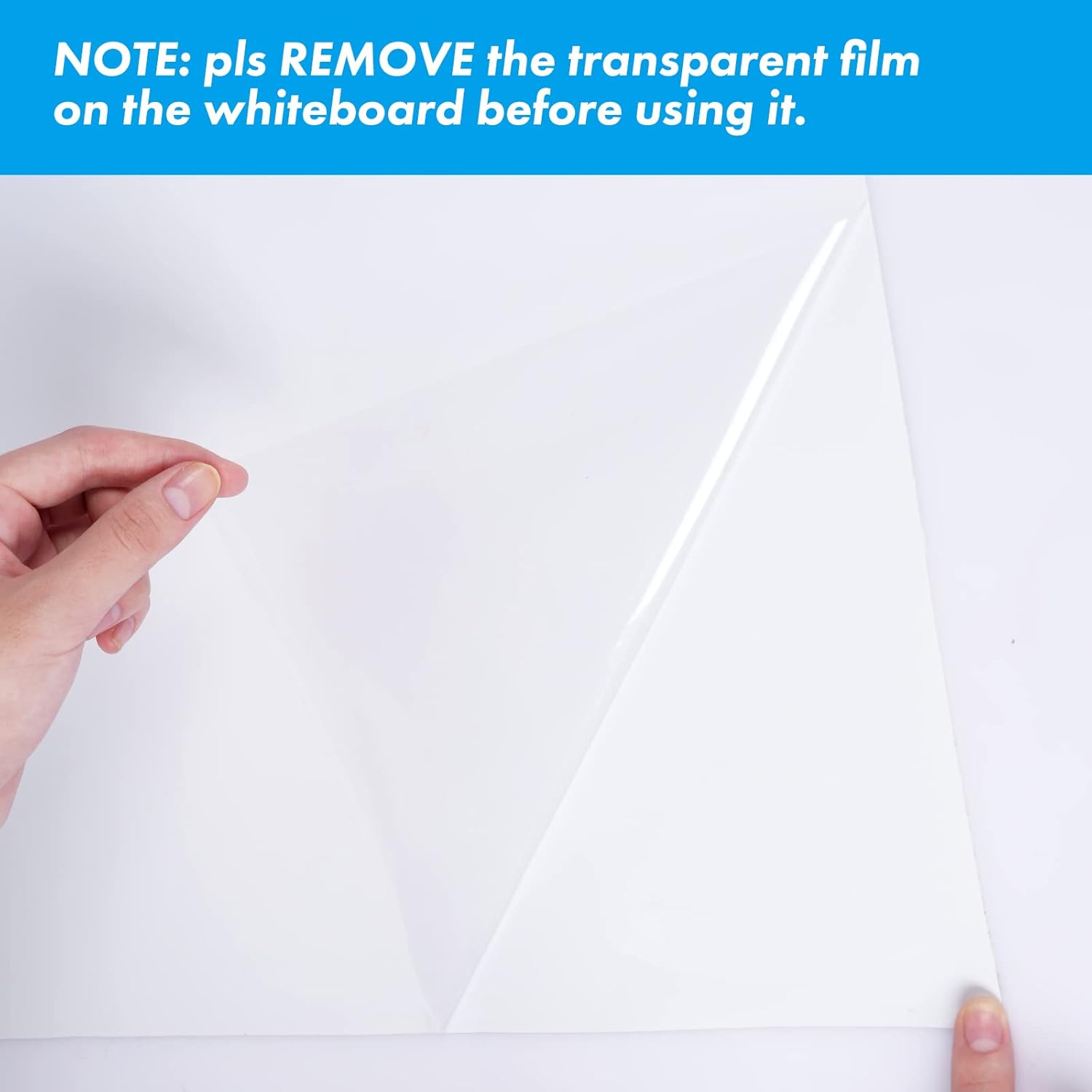 - NO GHOST – The product has been upgraded and is currently a high-quality whiteboard. Even if leave drawings on it for a month, they still erase with ease. NOTE: pls REMOVE the TRANSPARENT PROTECTIVE FILM on the whiteboard before writing.