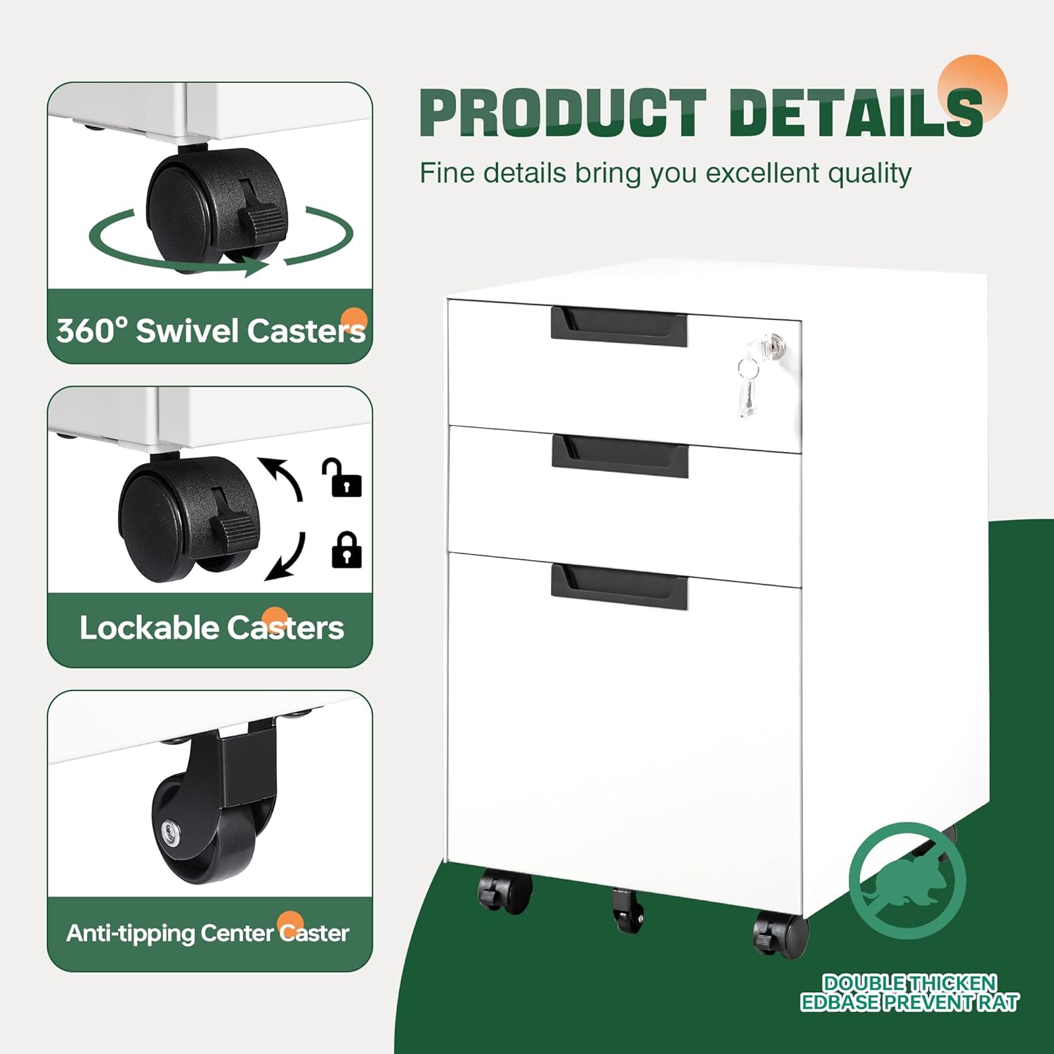 - Privacy Security:1 lock secures all three drawers, comes with 2 keys for your locking ,Anti-tilt mechanism allows only one drawer to open at the same time to prevent the cabinet from tipping forward