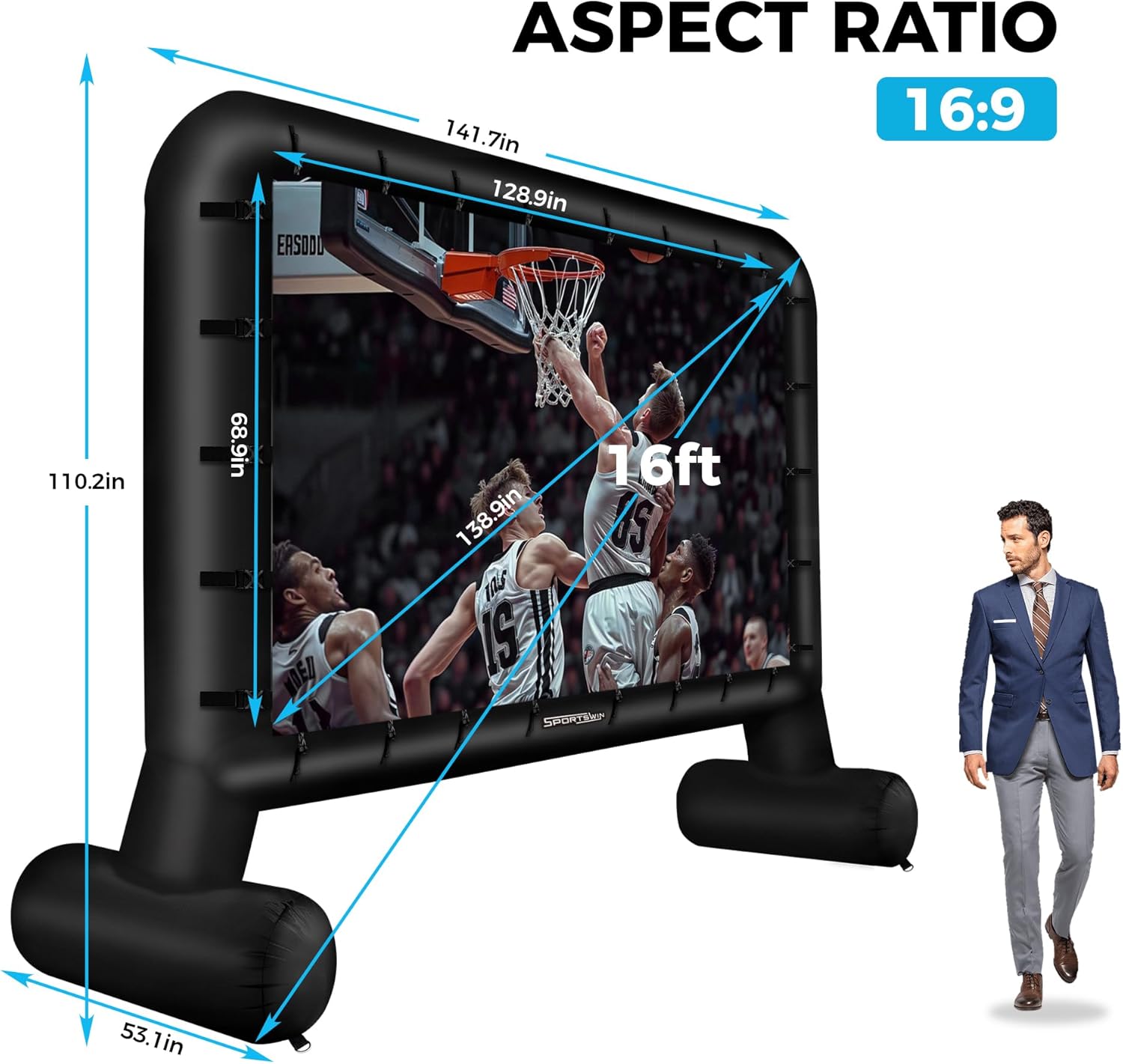 - ๐๐๐๐๐ฅ ๐๐ข๐ณ๐ ๐๐จ๐ซ ๐๐ฎ๐ญ๐๐จ๐จ๐ซ ๐๐ซ๐จ๐ฃ๐๐๐ญ๐ข๐จ๐ง- Our 16-ft inflatable movie screen outdoor offers the perfect size for outdoor projections. The screenโs 16:9 aspect ratio and front and rear white display canvas ensure a stunning viewing experience for all your special occasions, from movie nights to outdoor parties and special events.