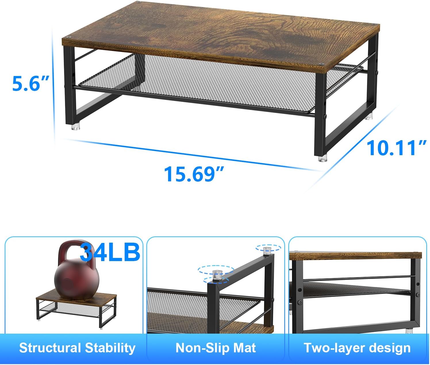 - 【Sturdy and Stable】 The monitor riser is constructed with a 15.7*10.2 inch metal plate and thick steel legs, with a maximum weight capacity of 44 lbs, enabling it to stably support a variety of items.