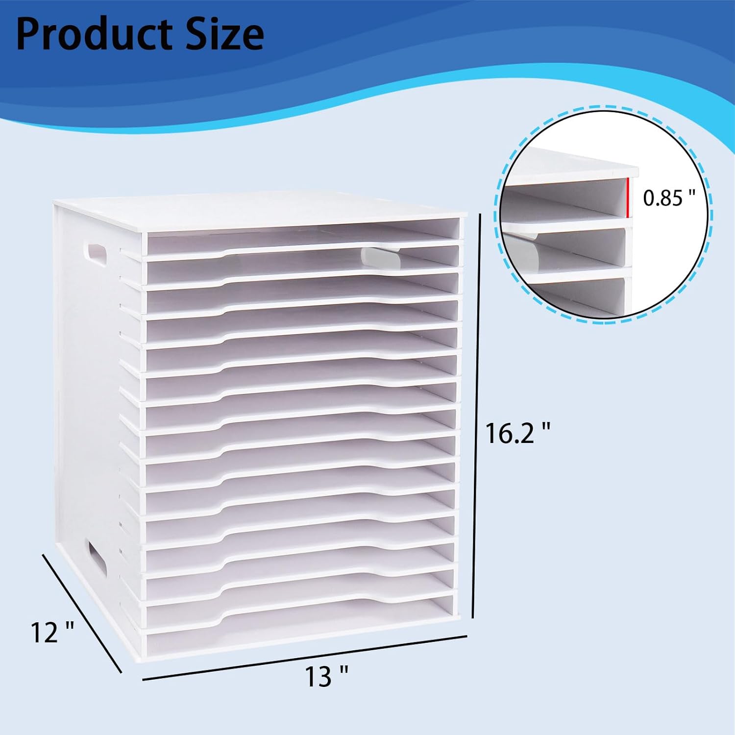 - Space-Saving Design - The overall dimensions of 13"L x 12.2"W x 16.2"H make the scrapbook paper rack a space-saving storage solution, ideal for craft rooms, home offices, or any area with limited space.