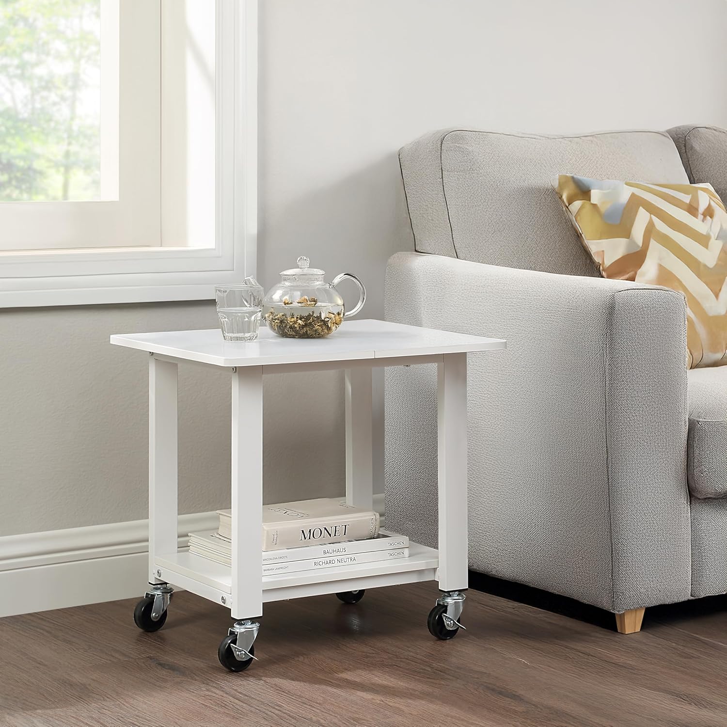 - Two-Tier Storage – Top shelf holds printers or scanners; bottom shelf stores paper, toner, and office supplies.
