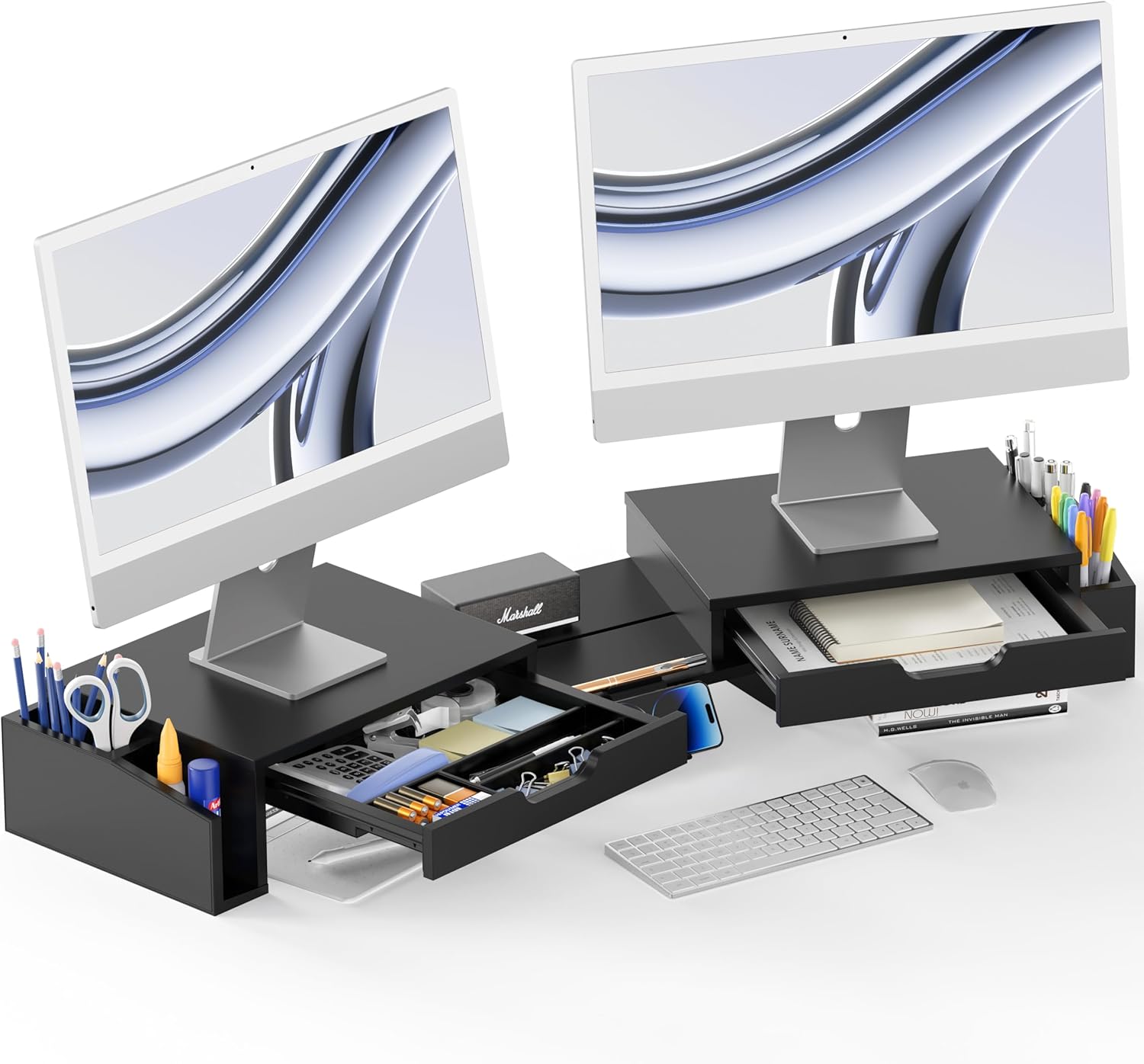 Simple Houseware Desk Dual Monitor Stand Riser with Pull-Out Drawers, Black