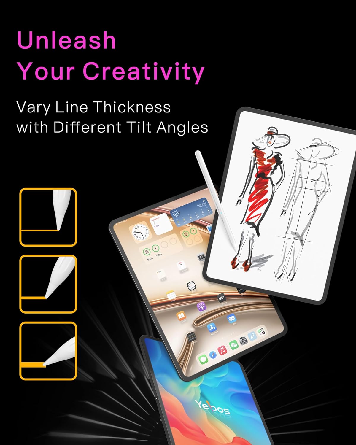 - ✍【Precise Writing – 0.1mm Pixel Accuracy & Tilt Sensitivity】 Experience pixel-level precision of up to 0.1mm with our stylus pen for iPad Pro. The upgraded smart chip guarantees high sensitivity without lag or breakpoints. Its POM tip ensures noise-free, precise strokes, delivering a smooth, paper-like feel. Tilt the stylus to adjust line thickness, perfect for drawing, sketching, and detailed design work. Note: This stylus does not support pressure sensitivity but serves as an excellent Apple Pencil Pro alternative.