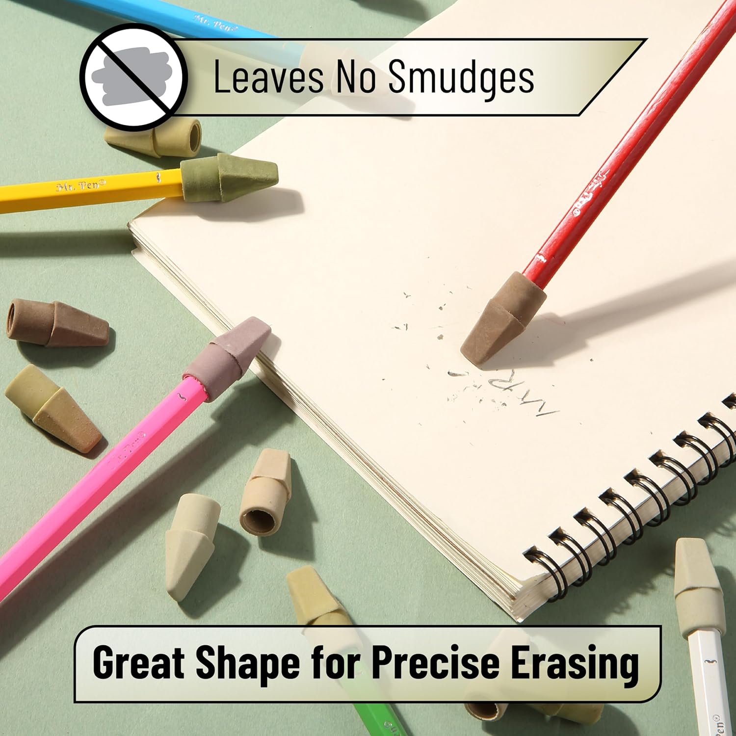 Mr. Pen- Pencil Erasers Toppers, 120 Pack, Colorful, Latex Free, No Smudge, Mr Pen Erasers for Pencils