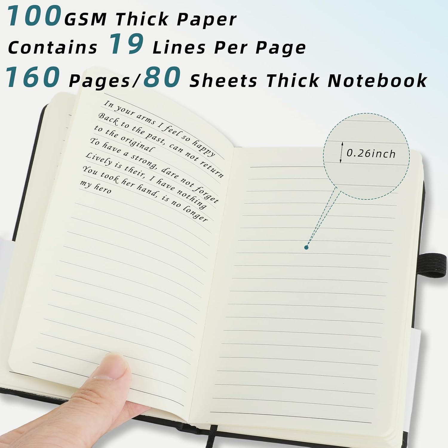 - Thick Lined Paper for Writing: Crafted with 100GSM cream-white paper, these lined journals prevent ink bleed-through and offer a smooth writing experience. Each small notebook and pen set includes 160 pages, perfect for journaling, note-taking, or professional use.
