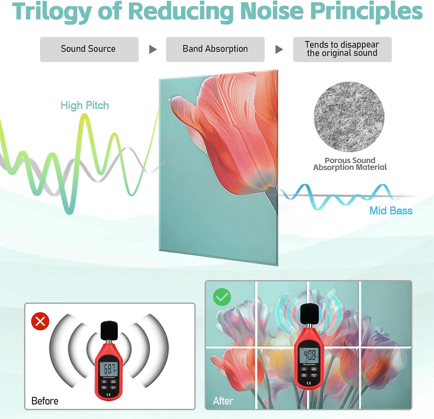 8 Pack Art Acoustic Panels, 48"X32" Self-adhesive Soundproof Wall Panels, Decorative Sound Absorbing Panel, Acoustic Treatment for Studio, Home, Office (Colorful Tulips)