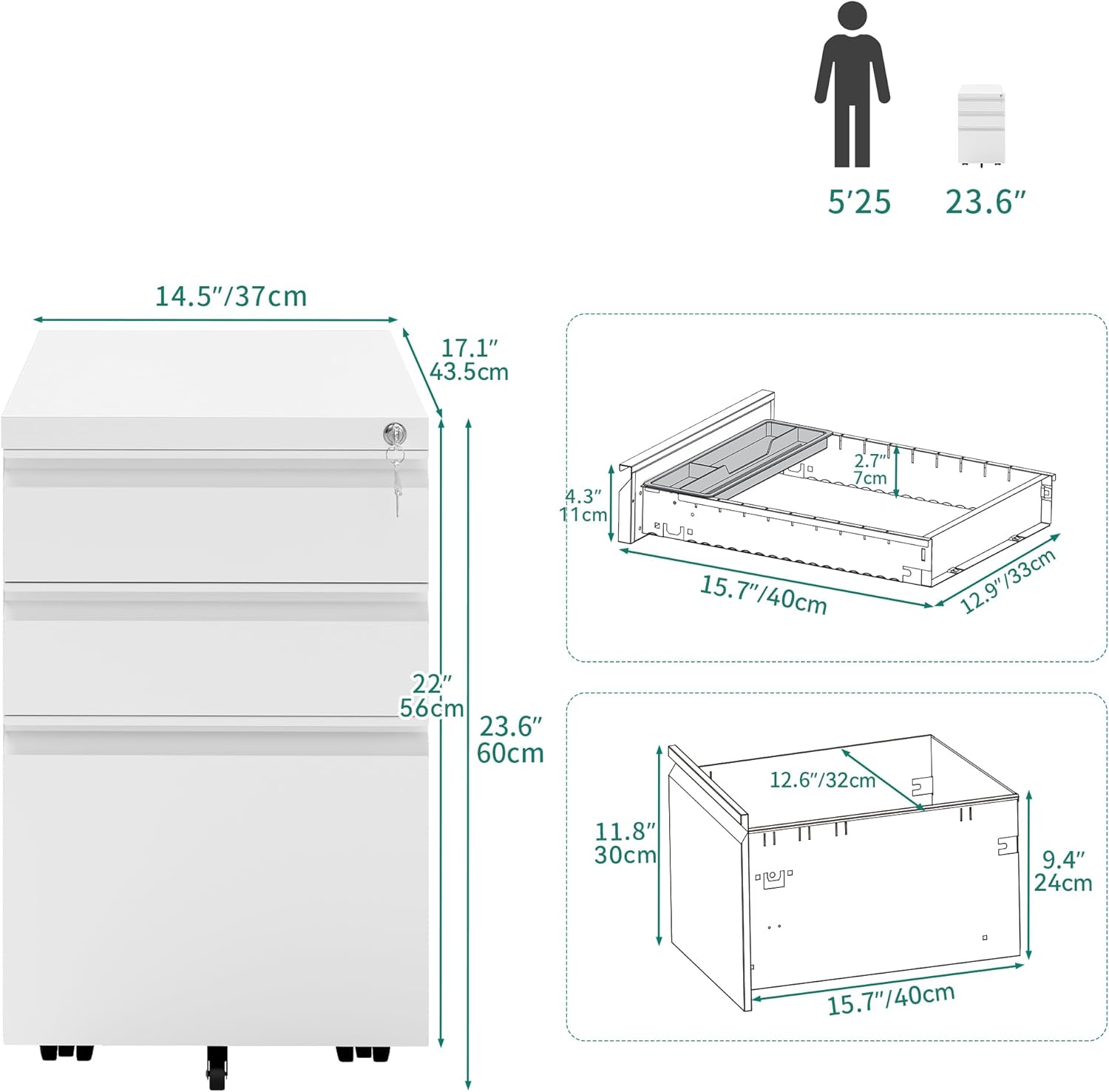 - ă Large storage drawer ă Three drawer file cabinet provide large storage space, each drawer provides movable hanging bar, can allow letter size documents to be hung horizontally and vertically, legal and A4 size documents can only be hung vertically, not horizontally; Please carefully measure the size of your desk and documents before purchasing, so that you can better store and organize your documents.