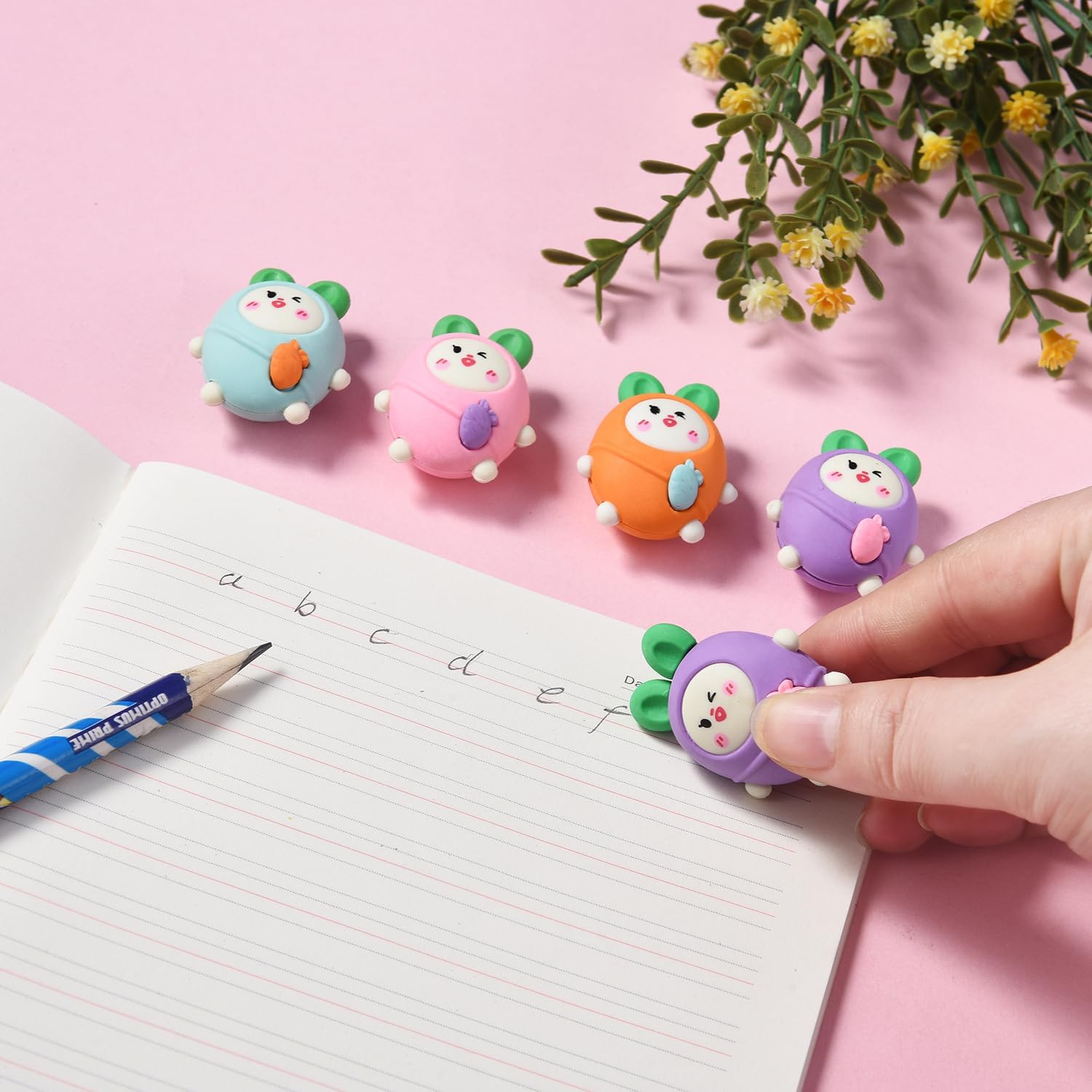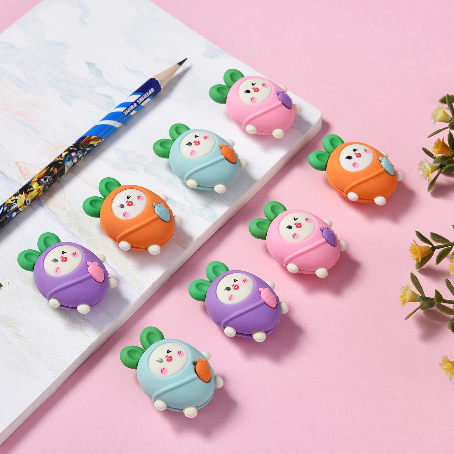 20 Pack Carrot Erasers for Kids, 3D Erasers for Boys Girls, Fun Take Aapart Erasers for School Supplies Prize Gifts Party Favors