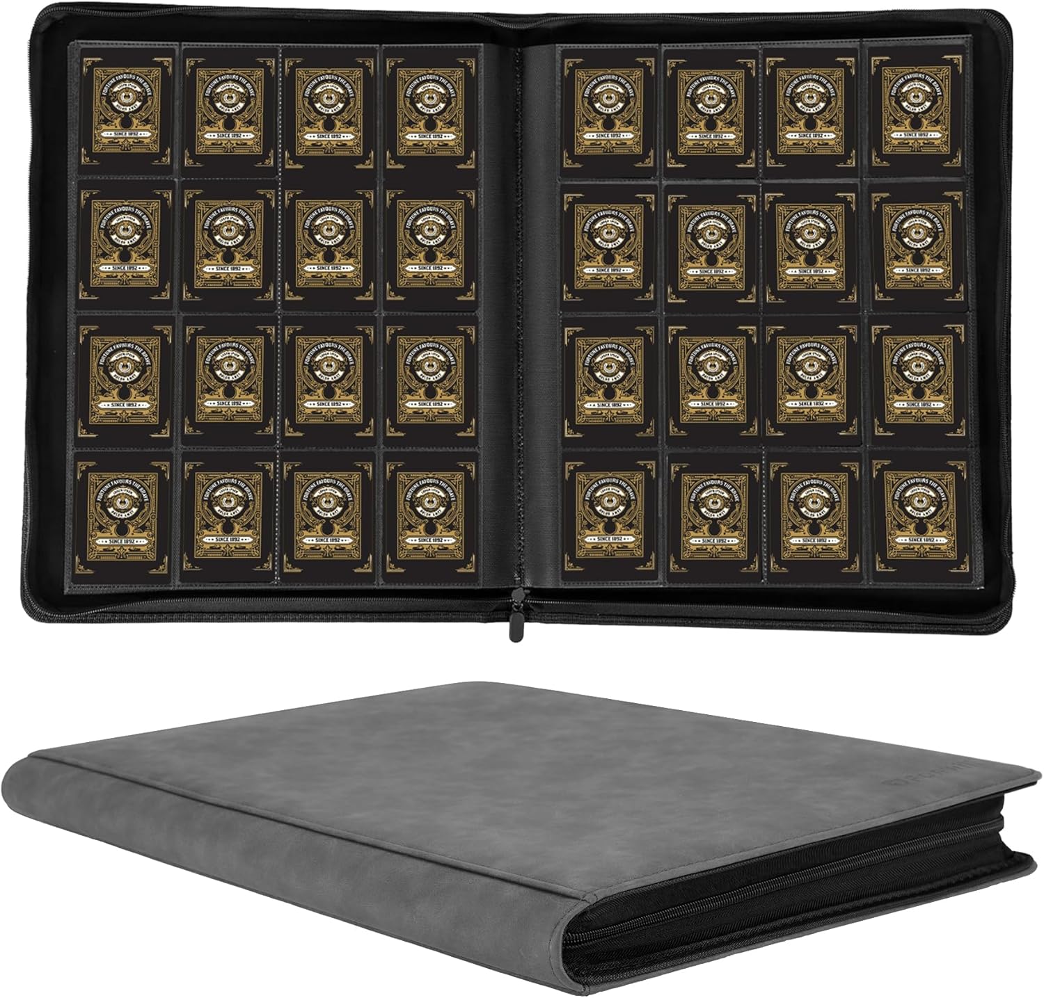 1000+ Pockets Trading Card Binder, 16 Pockets Trading Card Binder Ringless Side Loading Trading Card Album Folder for TCG,MTG,Sports Cards(Gray)