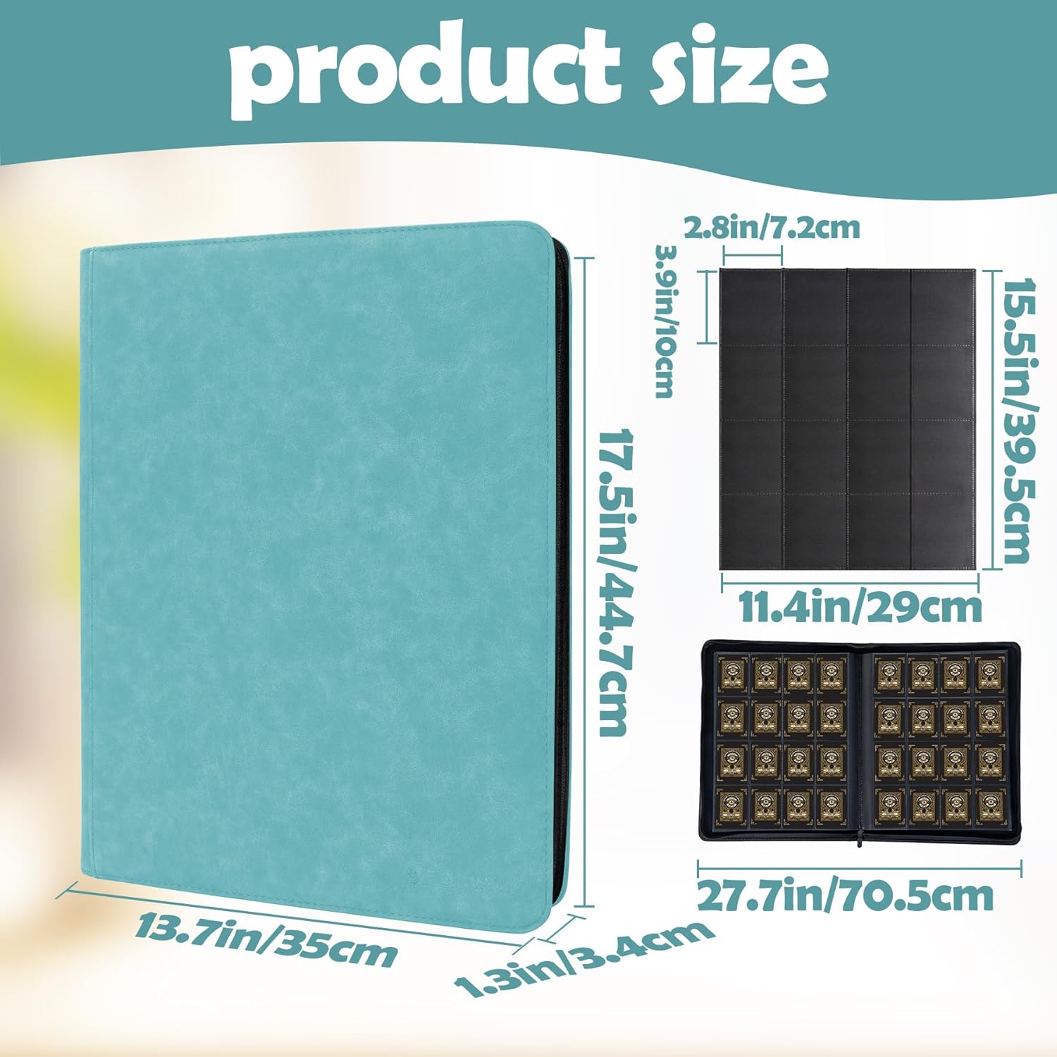 - Made To Last :our carrying case binder is comfortable to touch and hold in hands. The card binder for trading cards is made of premium PU leather, Water or raindrops won’t seep through. Closed zipper design provides multiple protections so that the inner page or cards does not fall.Handle straps design can carry around to show off cards to your friends