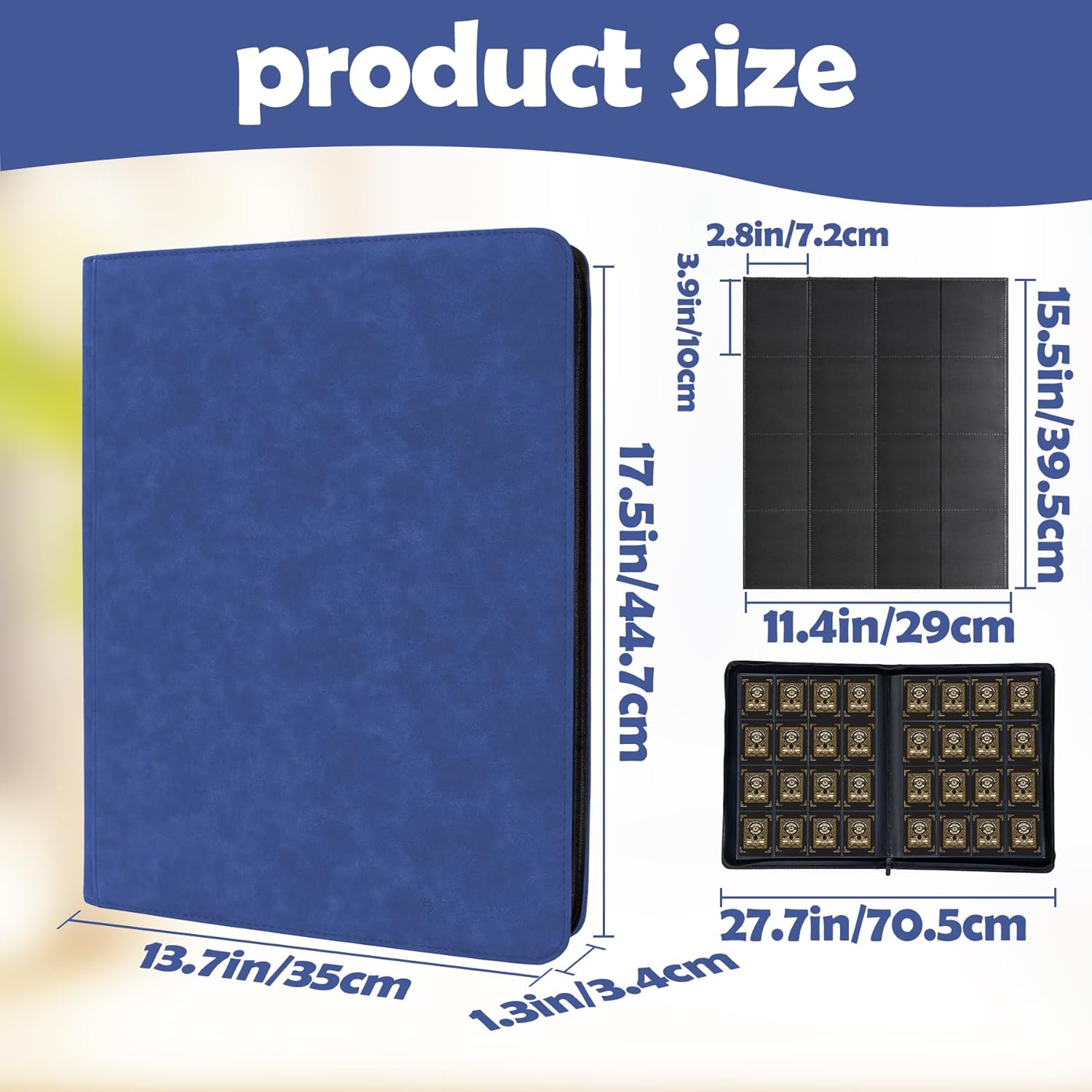 - Made To Last :-our carrying case binder is comfortable to touch and hold in hands. The card binder for trading cards is made of premium PU leather, Water or raindrops won’t seep through. Closed zipper design provides multiple protections so that the inner page or cards does not fall.Handle straps design can carry around to show off cards to your friends