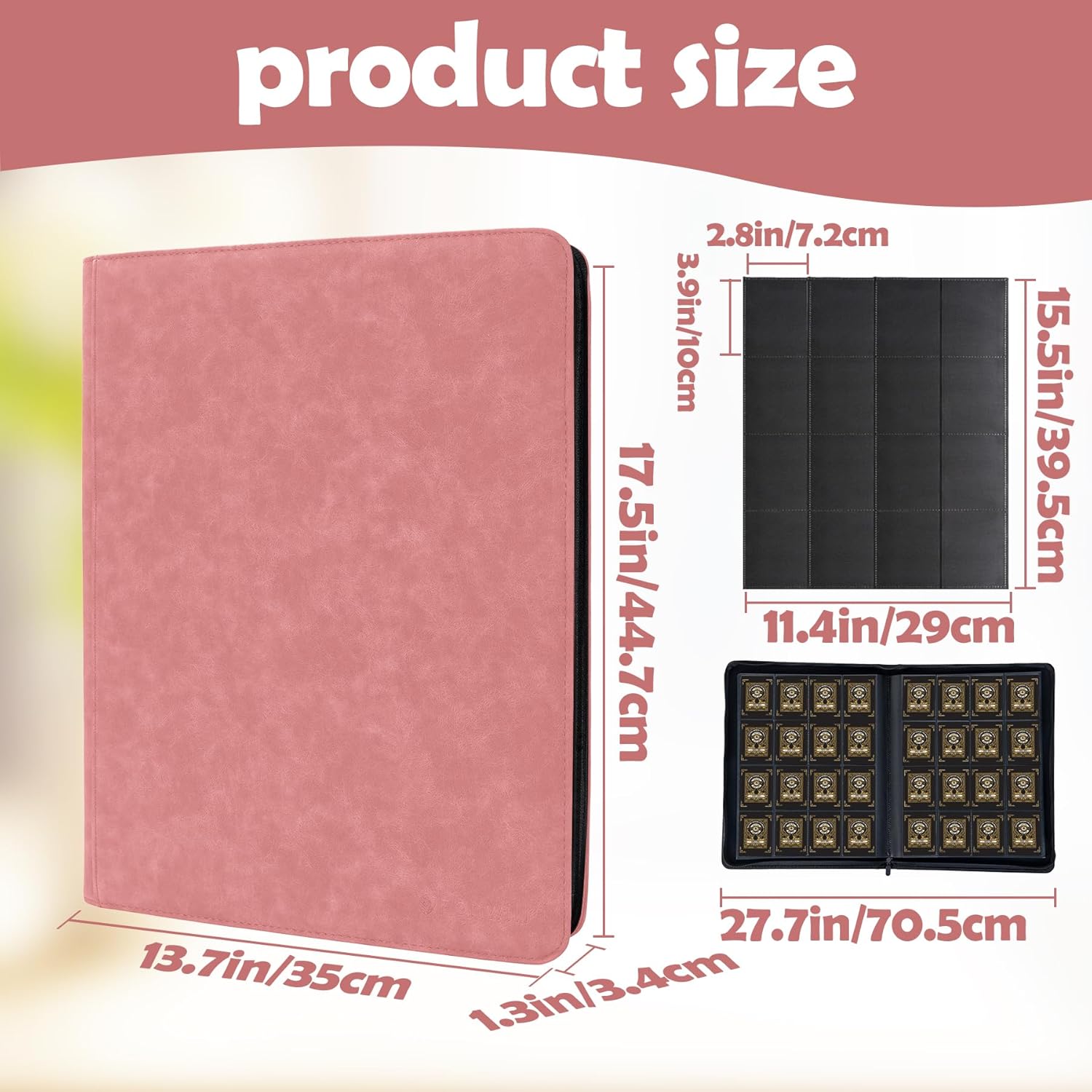 - Made To Last :-our carrying case binder is comfortable to touch and hold in hands. The card binder for trading cards is made of premium PU leather, Water or raindrops won’t seep through. Closed zipper design provides multiple protections so that the inner page or cards does not fall.Handle straps design can carry around to show off cards to your friends