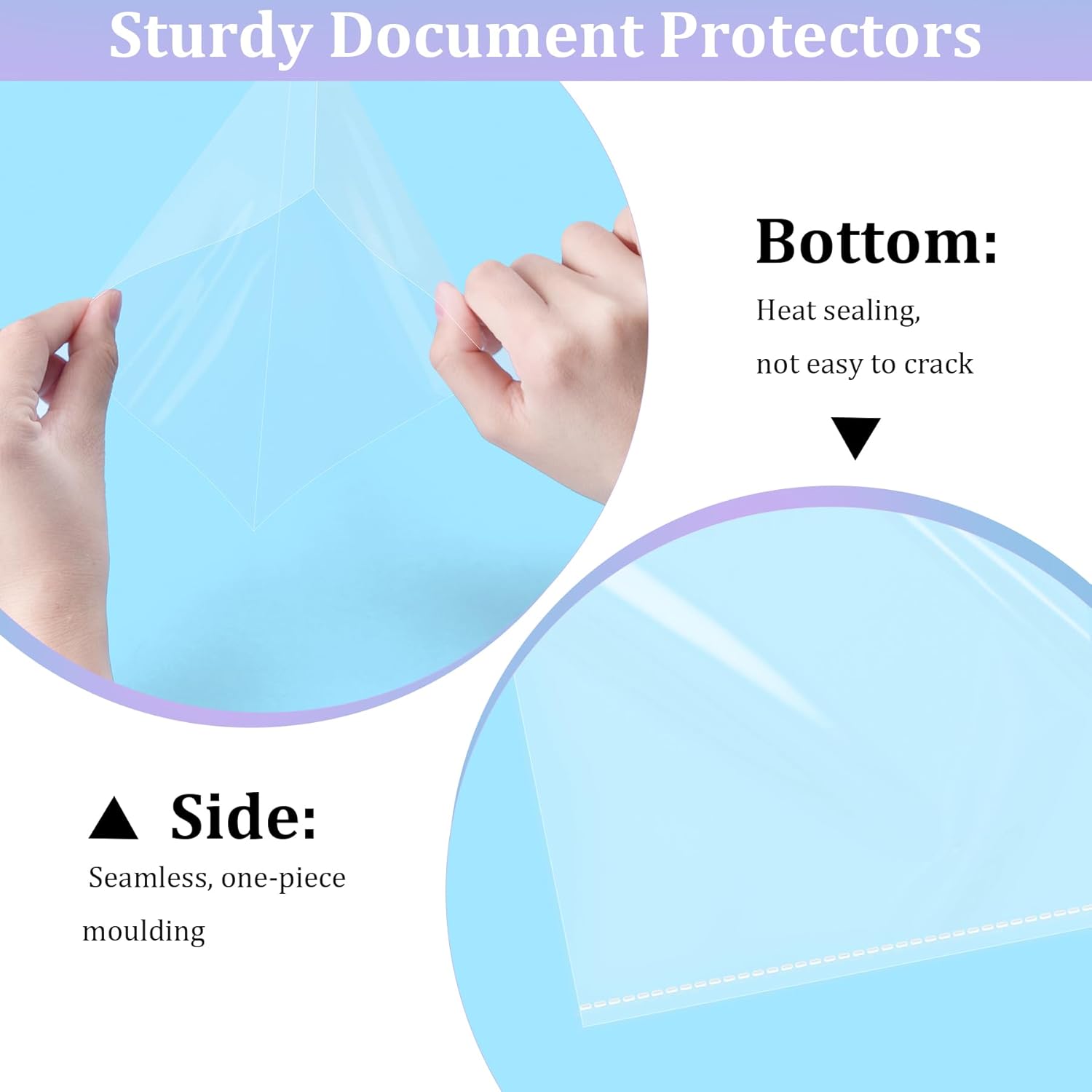 - No-Hole Design for Flexibility: Designed without the three-hole punch, these protectors feature heat-welded seams for individual portability, ideal for protecting documents that are not in a binder