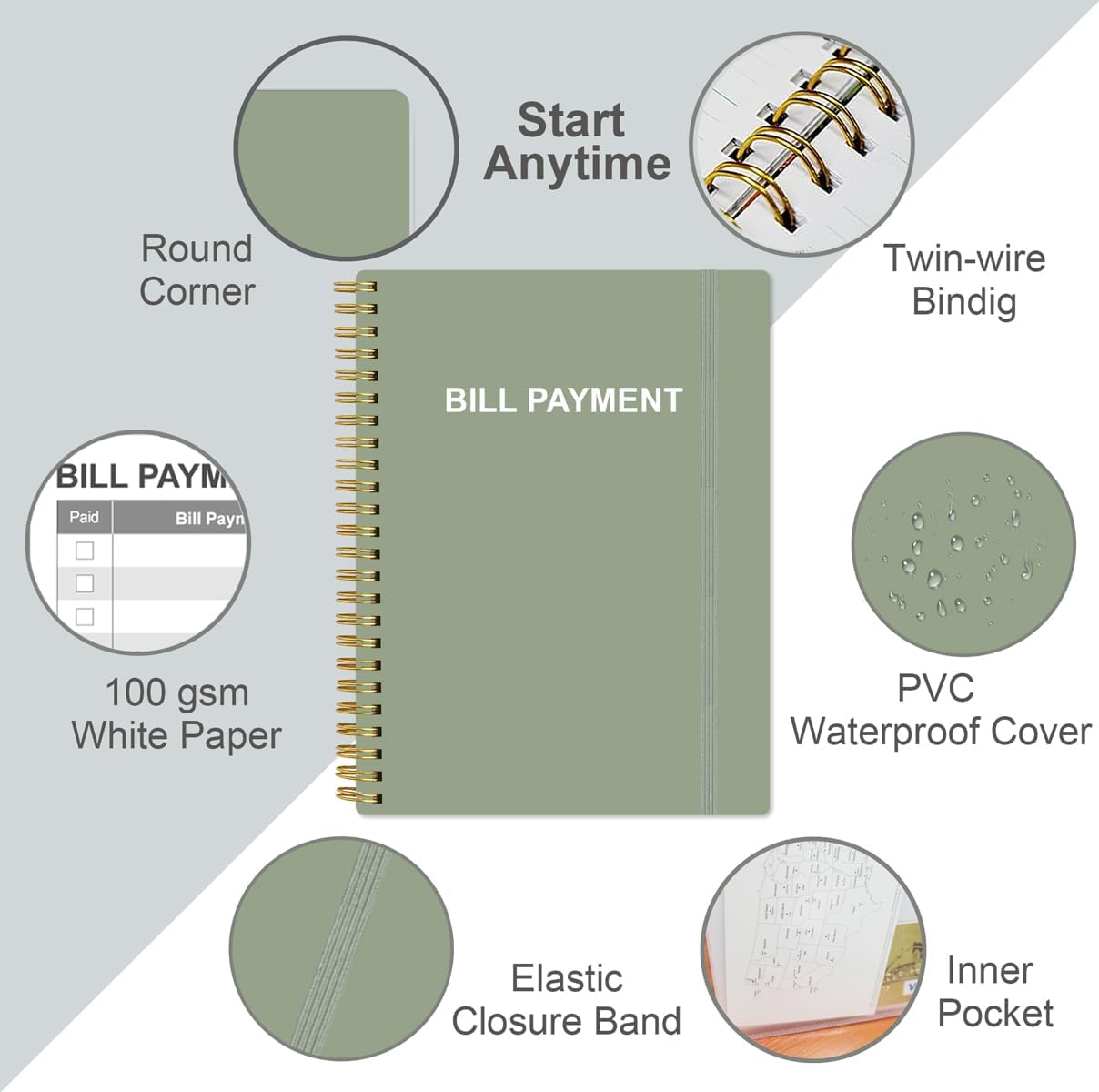 - HIGH QUALITY - The bill payment tracker spiral notebook size of 8" x 10.5", just the perfectly size to fit in your backpack, purse or laptop case. Bill payment tracker monthly organizer is used to high quality 100gsm pure white paper, elastic band and a back pocket for extra space. it comes with 3680 entry lines (29 lines per page), make sure you have enough space to take control of your finances.