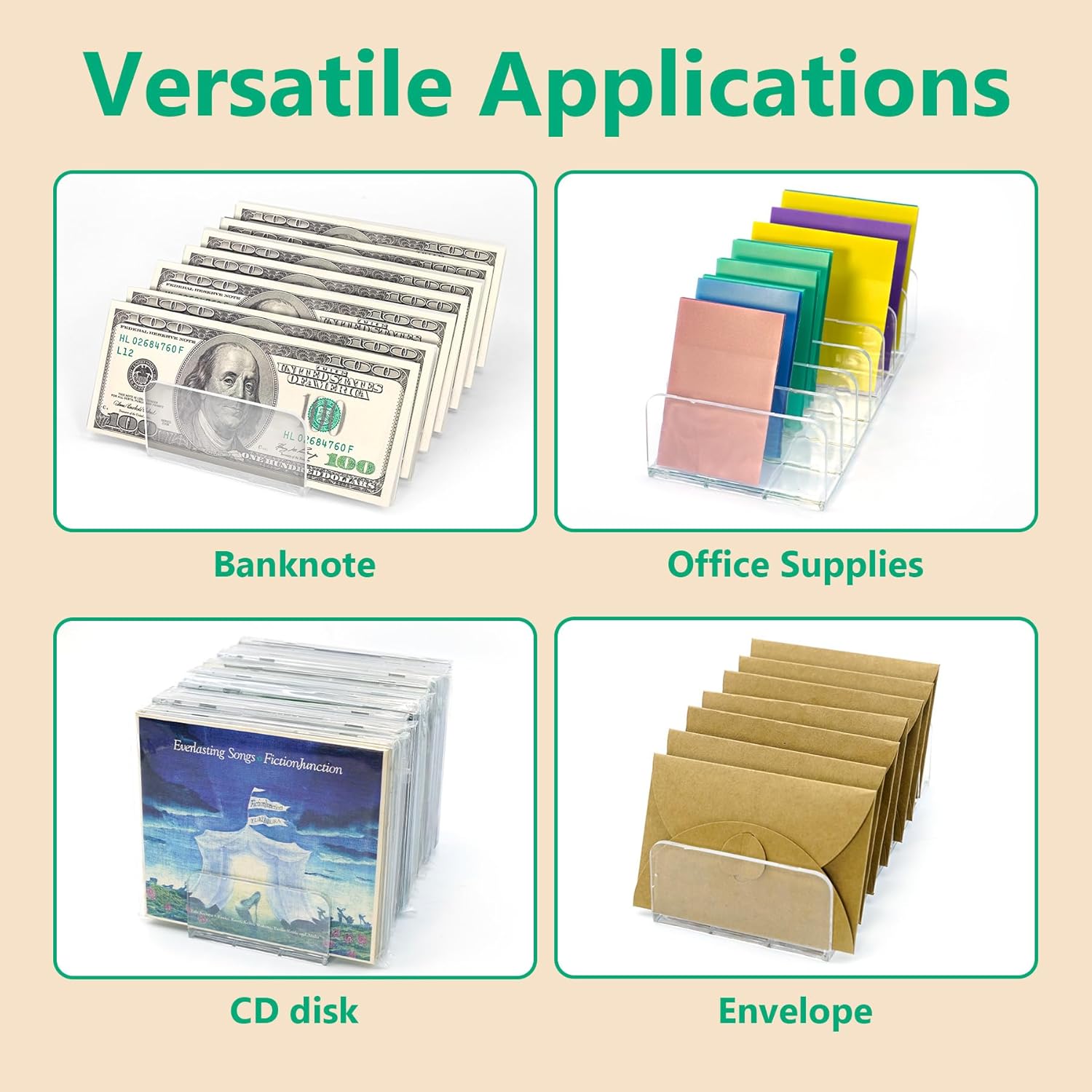- Classify Storage: Not only used for storing paper money, but also can be used to store and sort mails, bill,envelopes, cards, postcards, cell phones, office supplies, makeup platter, notes book and other small items, providing more storage space