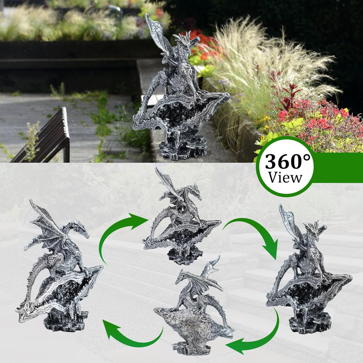 - 【Gothic Medieval Mythic Dragon Statue】This dragon has a gorgeous appearance with its retro silver exquisite crafts are sure to catch your eye and make it the perfect statement piece for any room.