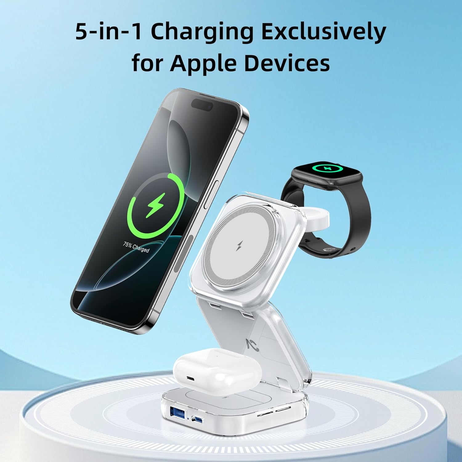 - Upgraded 5 in 1 Exclusively for Apple: Revolutionize your charging with our upgraded USB-C & USB-A base, transforming the conventional 3-in-1 station. Experience a comprehensive wireless charging solution for your iPhone, iWatch, AirPods, iPad, and even power banks or Android devices. Note: USB-C & USB-A ports deliver full speed for one device and smartly adjust when two are charged simultaneously