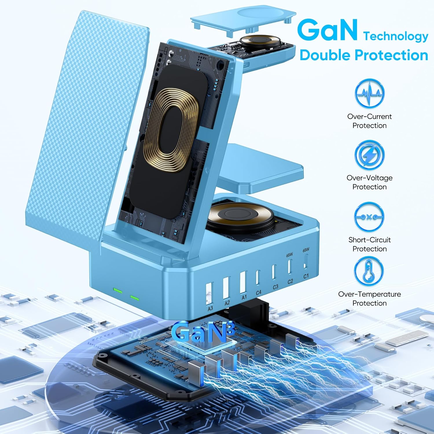 - 【65W Fast Charger Stand Dock】: Our Dual 65W PD Fast Charging Dock is equipped with the latest intelligent and efficient chipset with GaN III technology to ensure fast and safe powering of your devices. Ready to charge your Macbook series and other laptops. Our desk usb charging dock features over-current, over-voltage, over-temperature and over-charging protection. The internal circuitry is designed to prevent overcharging from damaging your device, ensuring safe charging.