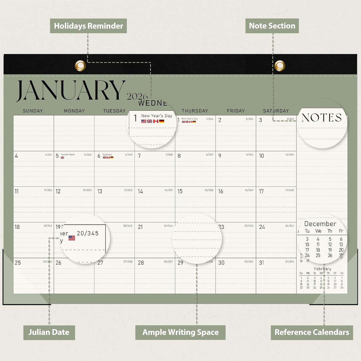 - [2025-2026 DESK CALENDAR] – Running until to December 2026, the desk calendar highlights holidays and Julian dates to keep you on track. Each month features two reference calendars for easy review of past and upcoming dates—perfect for managing long-term projects, school schedules, and work plans.