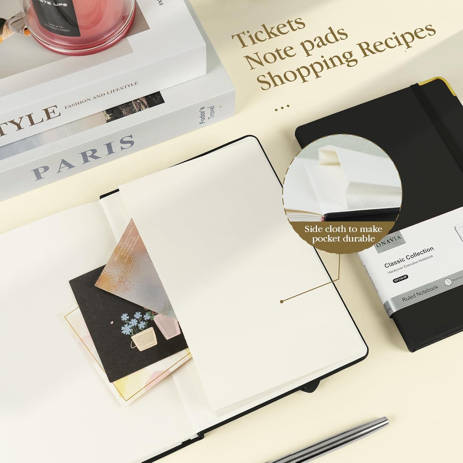 - Hardcover Journal Notebook: ONAVIA a5 journaling notebook features a durable and water-resistant faux leather cover, and 80 sheets/160 pages high-density hard thick paper. The exquisite golden corner design not only protects the edges of the lined notebook from damage caused by external impacts but also enhances its aesthetic appeal and lends an air of sophistication