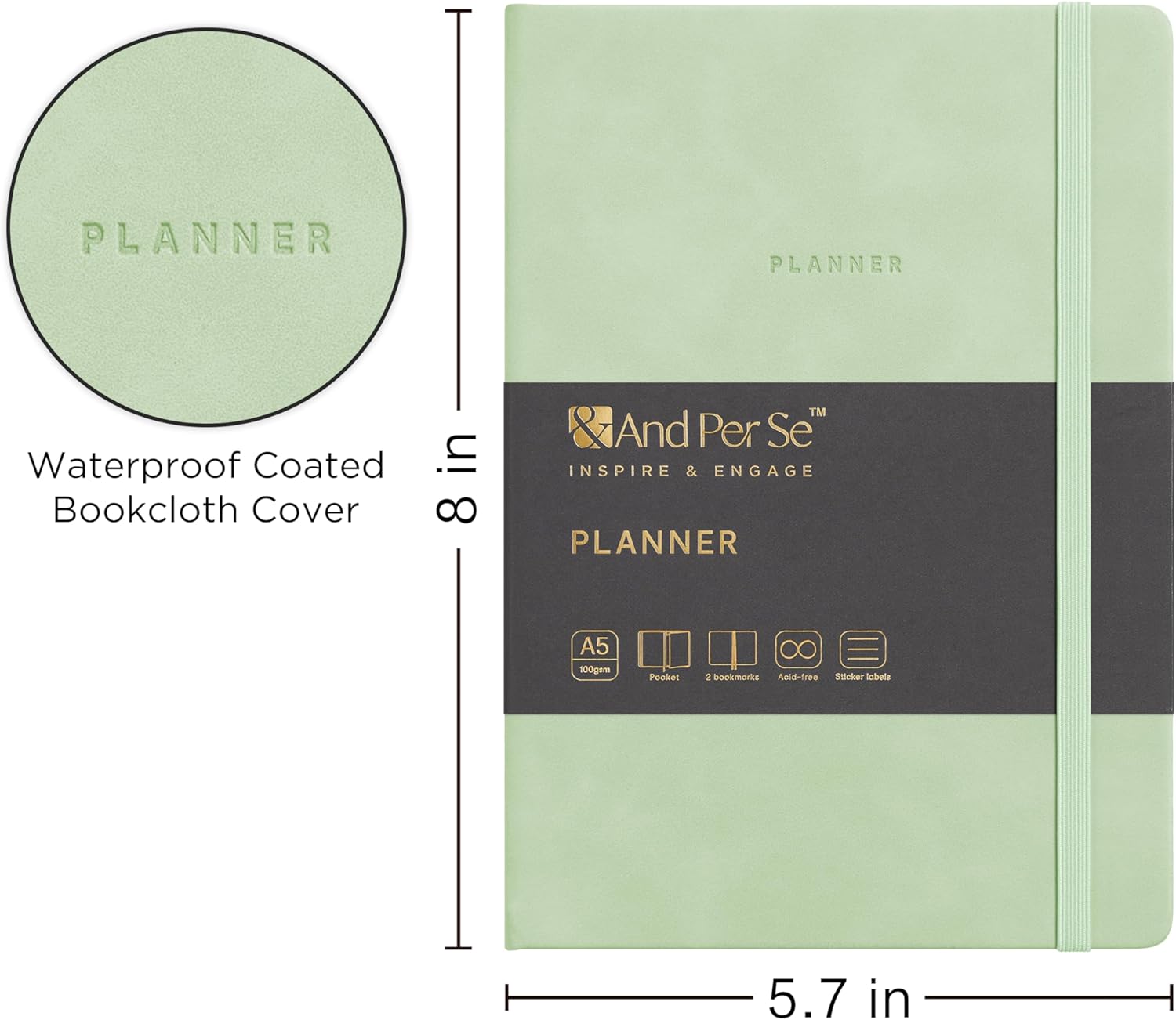 And Per Se Undated Academic Planner, A5 Weekly Calendar Planner, 72 Weeks Hardcover to Track Goals, Teacher Student Planning Book with Monthly Tab Stickers & Back Pocket (Light Green)