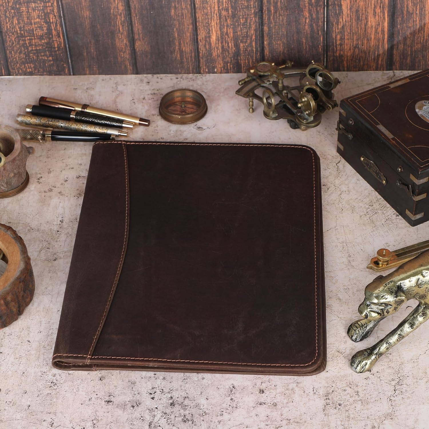 Heavy Duty Buffalo Leather Legal Pad Portfolio Handmade Executive Notebook Binder, Professional Padfolio Organizer Gift for Men and Women Genuine Leather Resume Document Holder (Dark Brown)