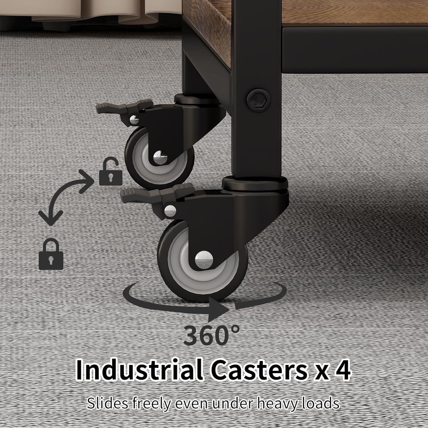 - Casters & Foot Pads Included: The printer stands features 4 ball-bearing swivel casters with brakes for easy mobility even on carpet. For stationary use, it can be secured with the included foot pads. Whether it's for mobile use or stationary, this printer desk has it all.