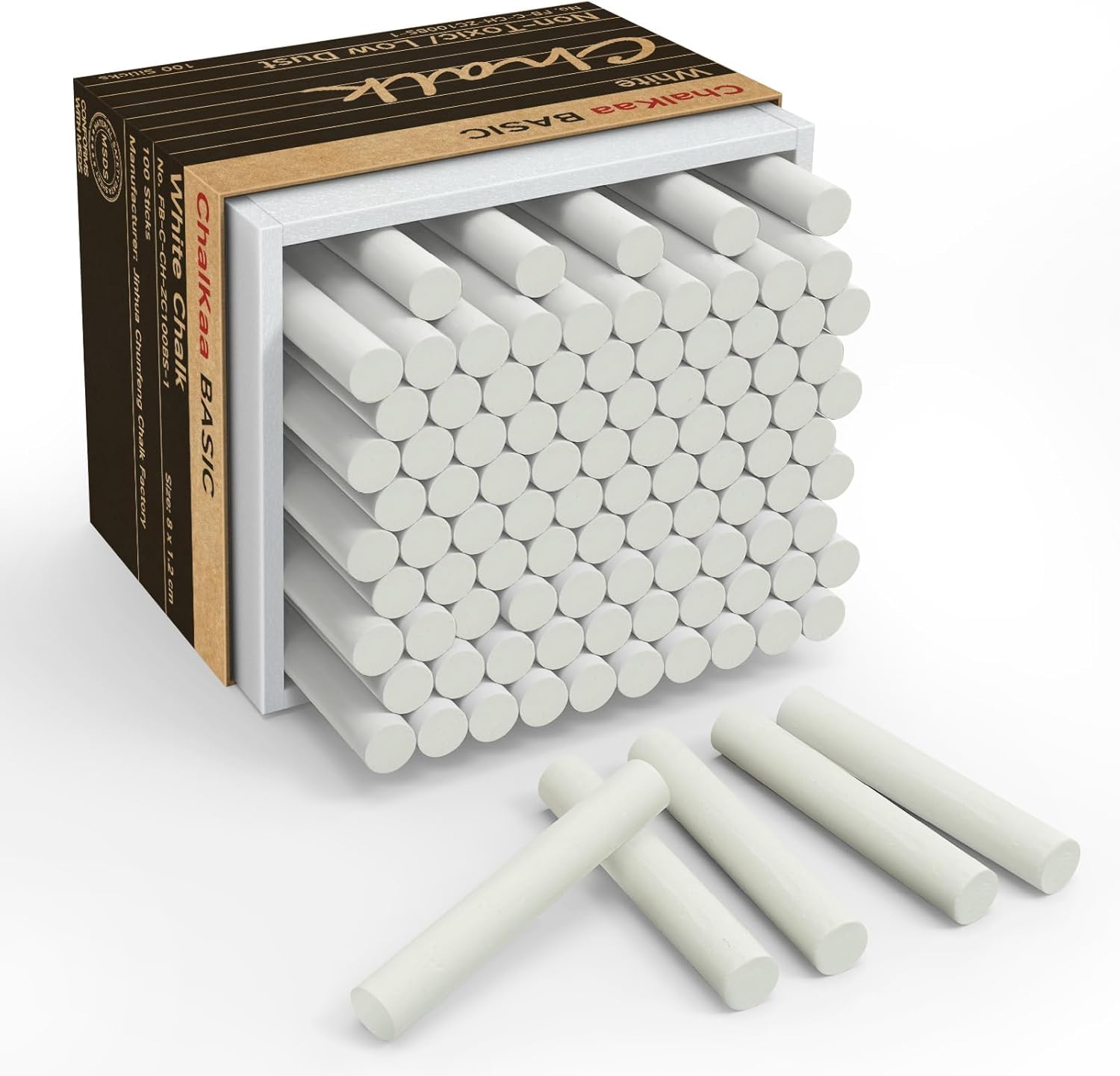 - 100-Pack Extra Thick Chalk: Each box of ChalKaa white chalk basic contains 100 pieces, each measuring 3.15 inches in length and 0.47 inches in diameter, making them longer and thicker than regular chalk. With an abundant quantity and enhanced durability, these chalks require less frequent replacement, making them ideal for teachers who teach for extended periods or creators who prefer uninterrupted flow of ideas without the need to change chalk often